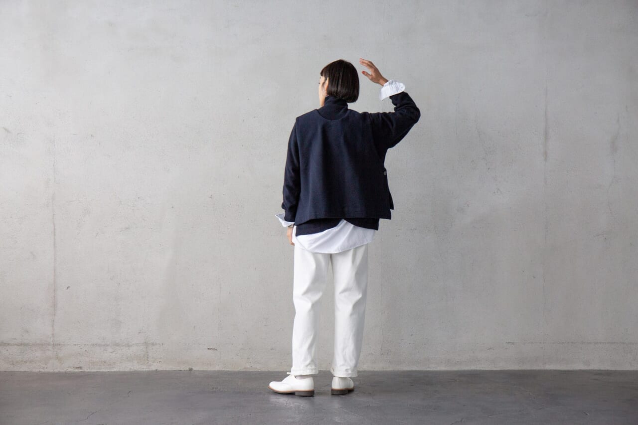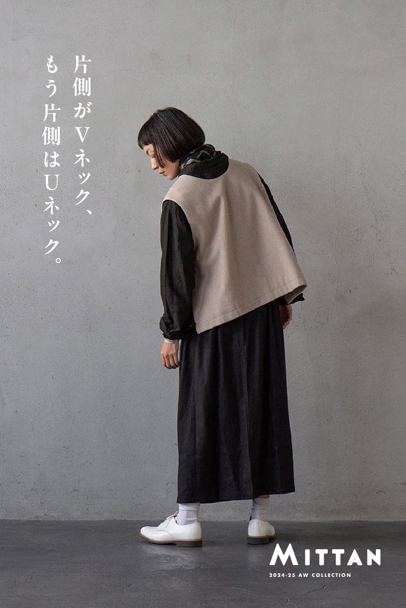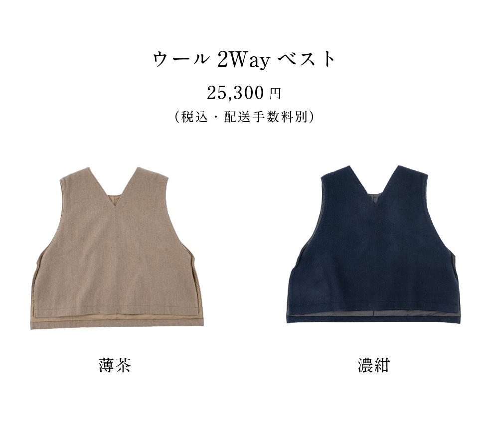 片側がVネック、 もう片側はUネック。 ウール2Wayベスト