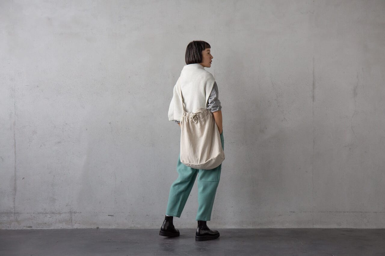 かたちは、巾着のような形が特徴のショルダータイプ。