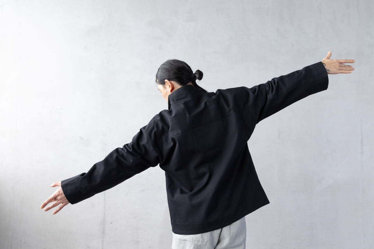 袖底を高めにすることで腕回りの稼働域をきちんと確保。