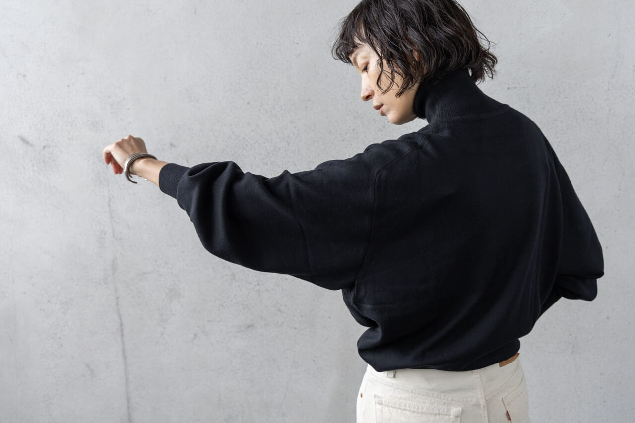 くらべて「ウルグアイウールタートルセーター」は細番手。