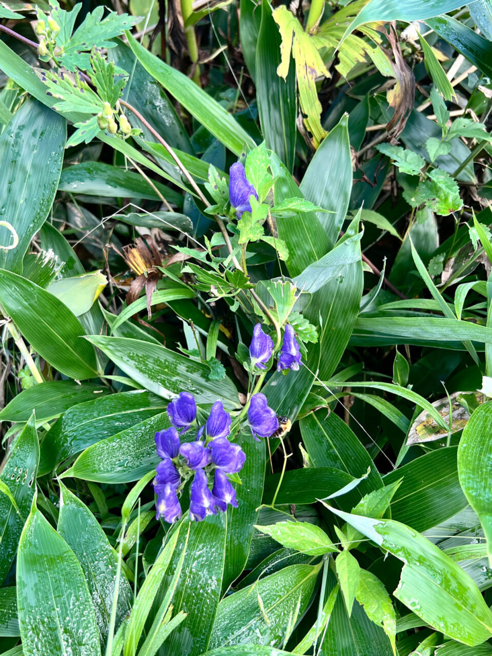 - 木道のそばにふわっと咲いている紫の花だけど、