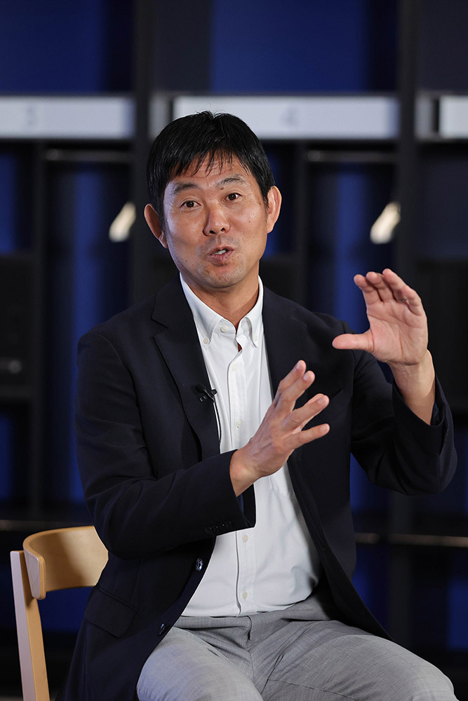 日本サッカーの未来について語る森保監督を、