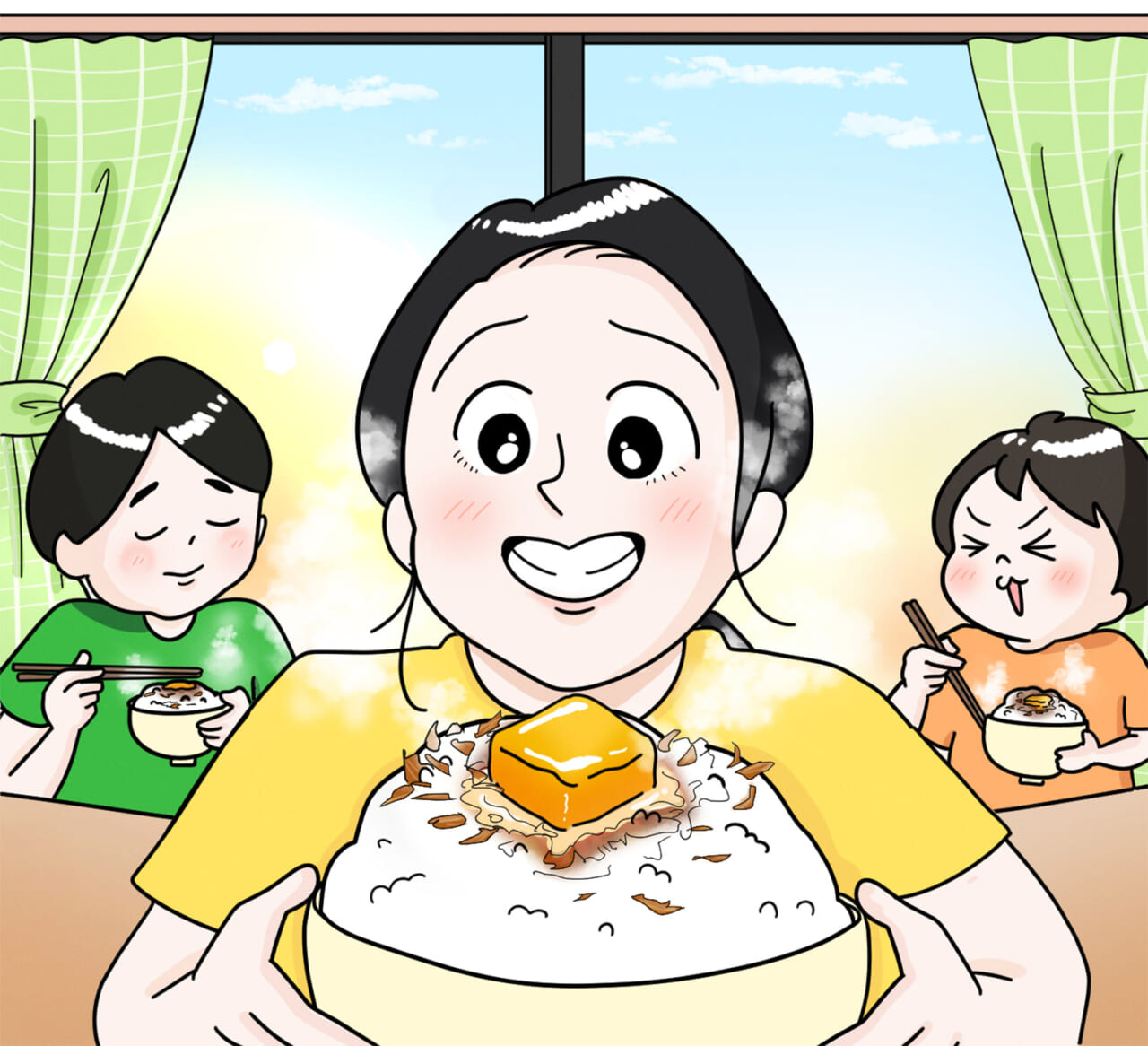 家じゅうに広がる酒粕の香りに、兄弟がさわぐ。