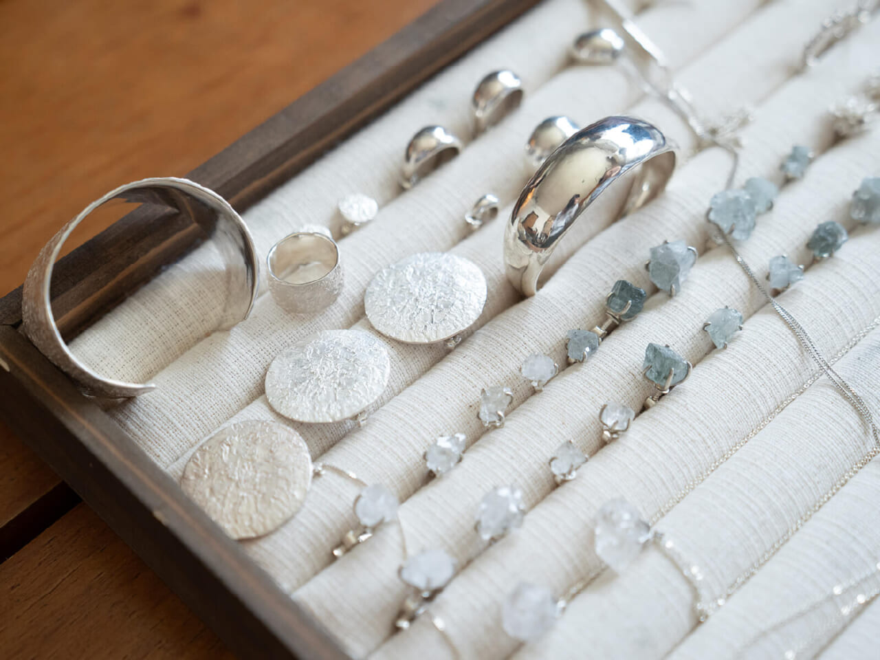 それらをモチーフとした作品を金属や鉱物を用いて表現。