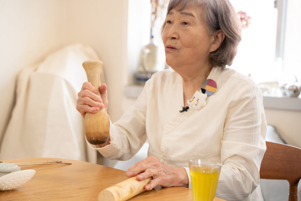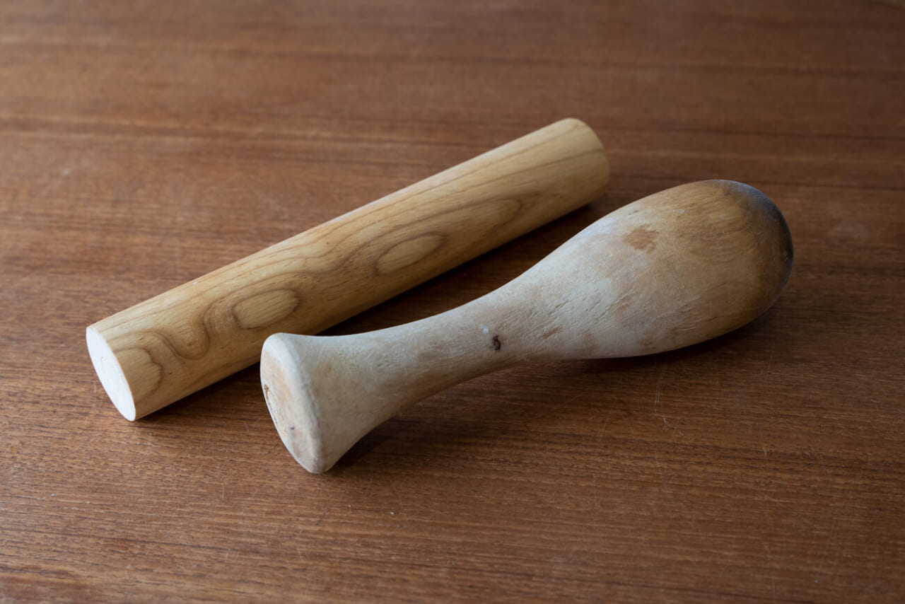 韓国はこういう木のものがすごく多いんです。 - すりこぎは、にんにくをつぶしたり、