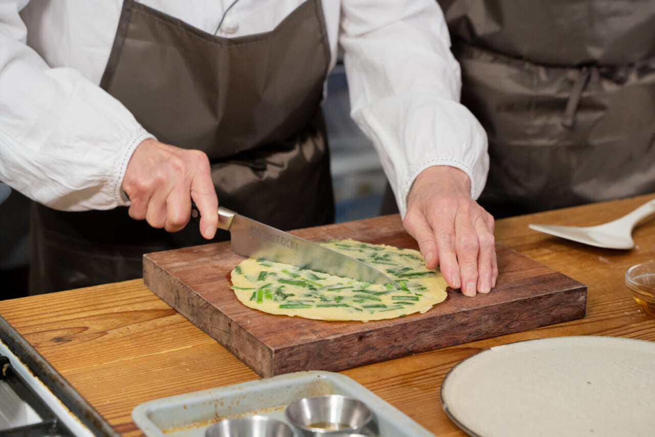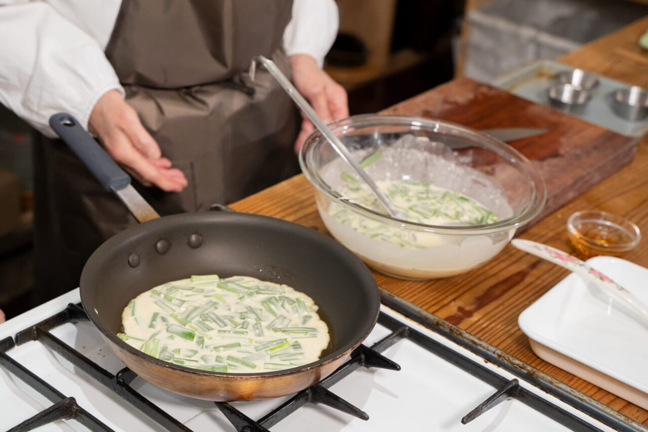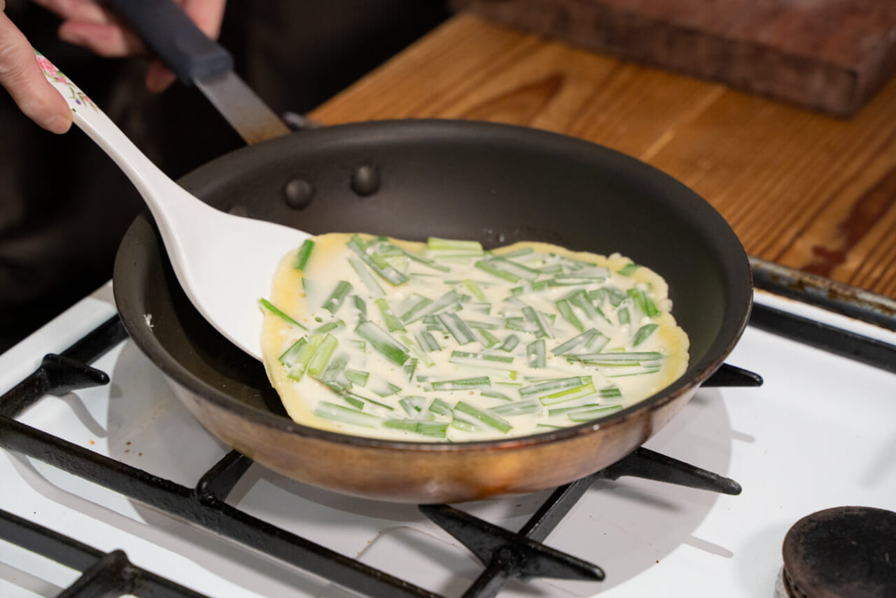 基本的に薄く焼くものですね。 - そして具材のニラは、