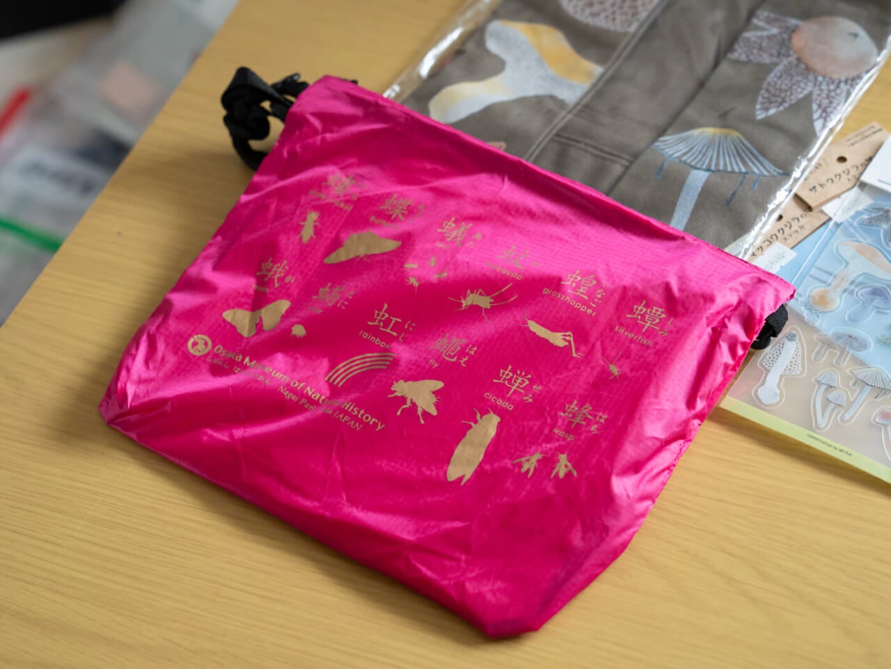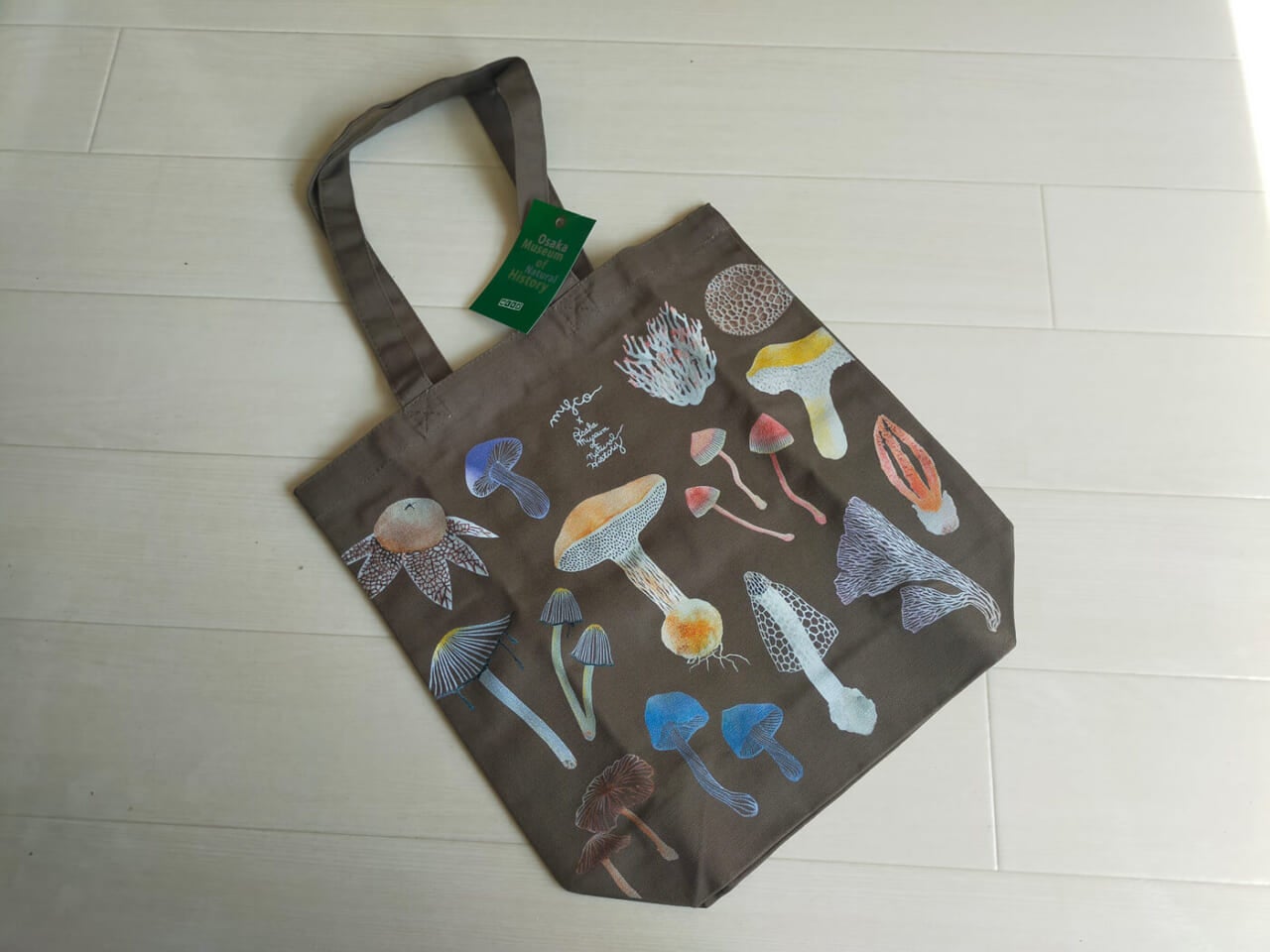 - うわ、いい。キノコ柄のトートバッグ。