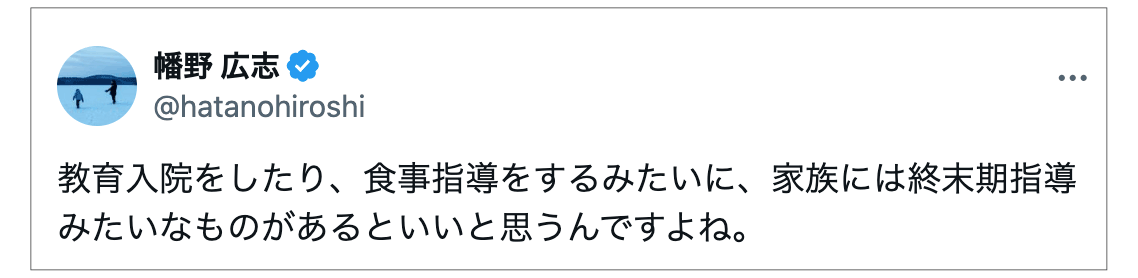 幡野さんのXでのポストなんです。 - 「教育入院したり、食事指導をするみたいに、