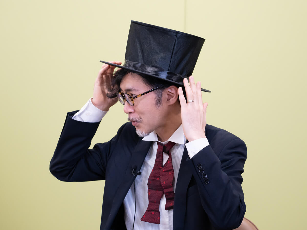 ボロボロのシルクハットで、