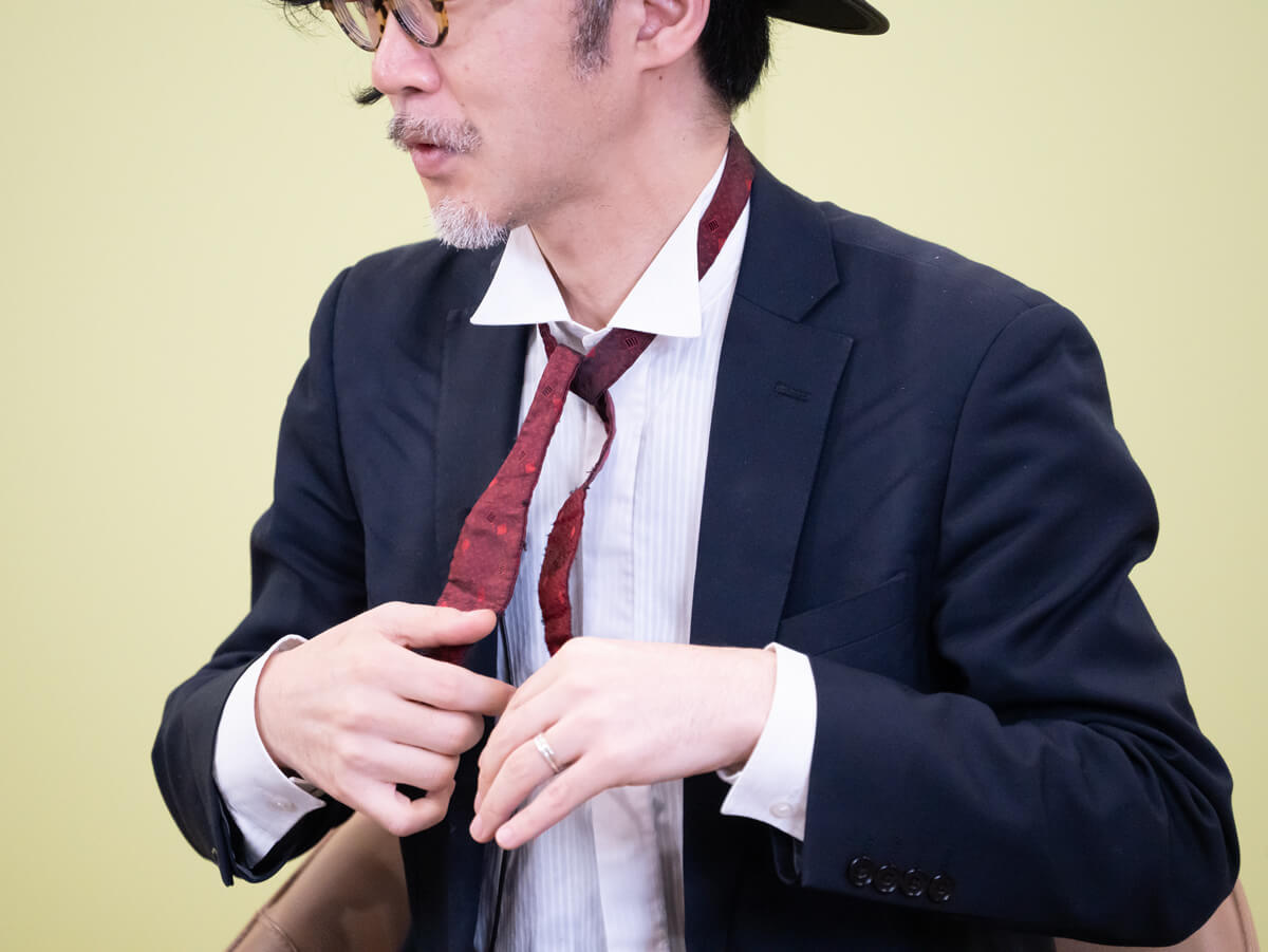 - どっちかというと、首のタイのほうが