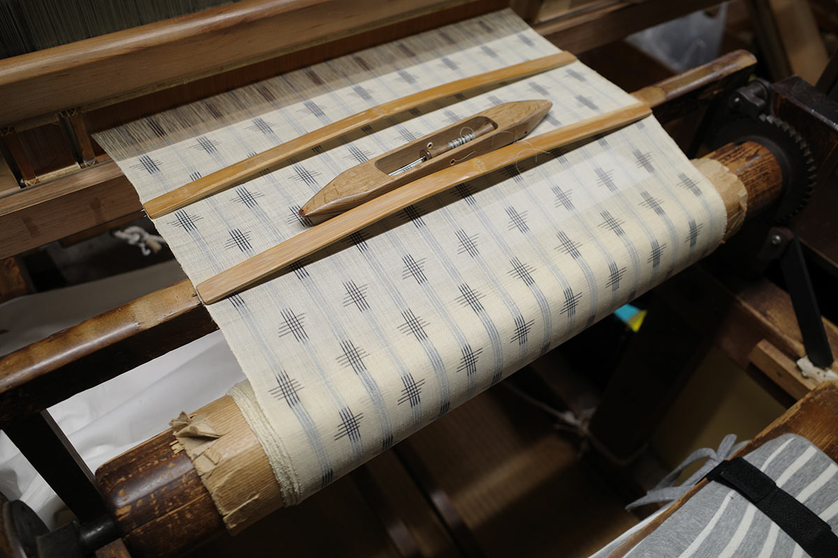 ▲能登上布・山崎麻織物工房さんの工房にて。