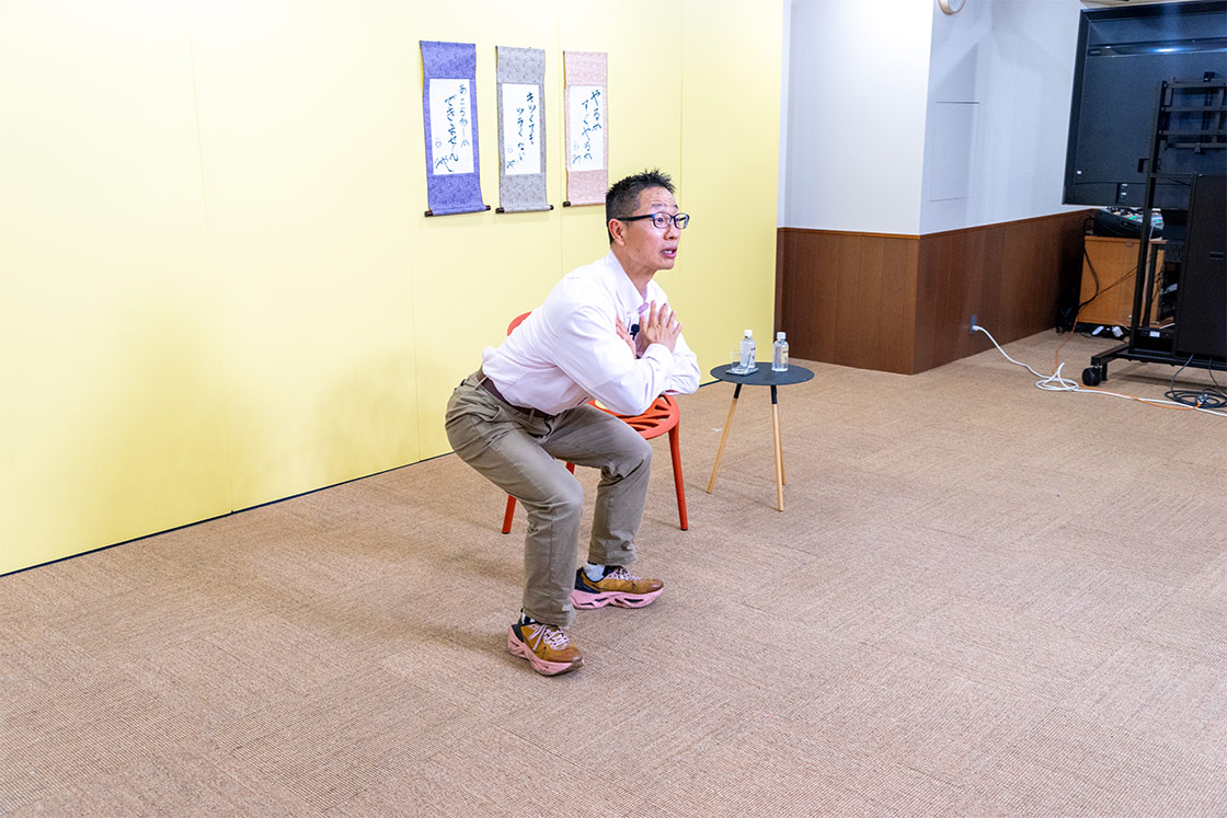 「しっかり丁寧に奥深くしゃがむ」のを10回。