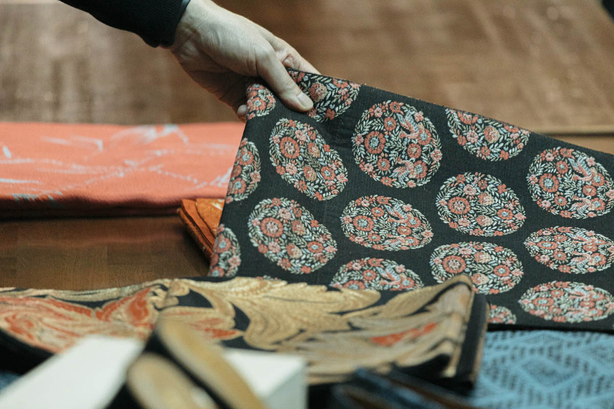 着物で靴をつくってみたらどうだろうと思ったのが