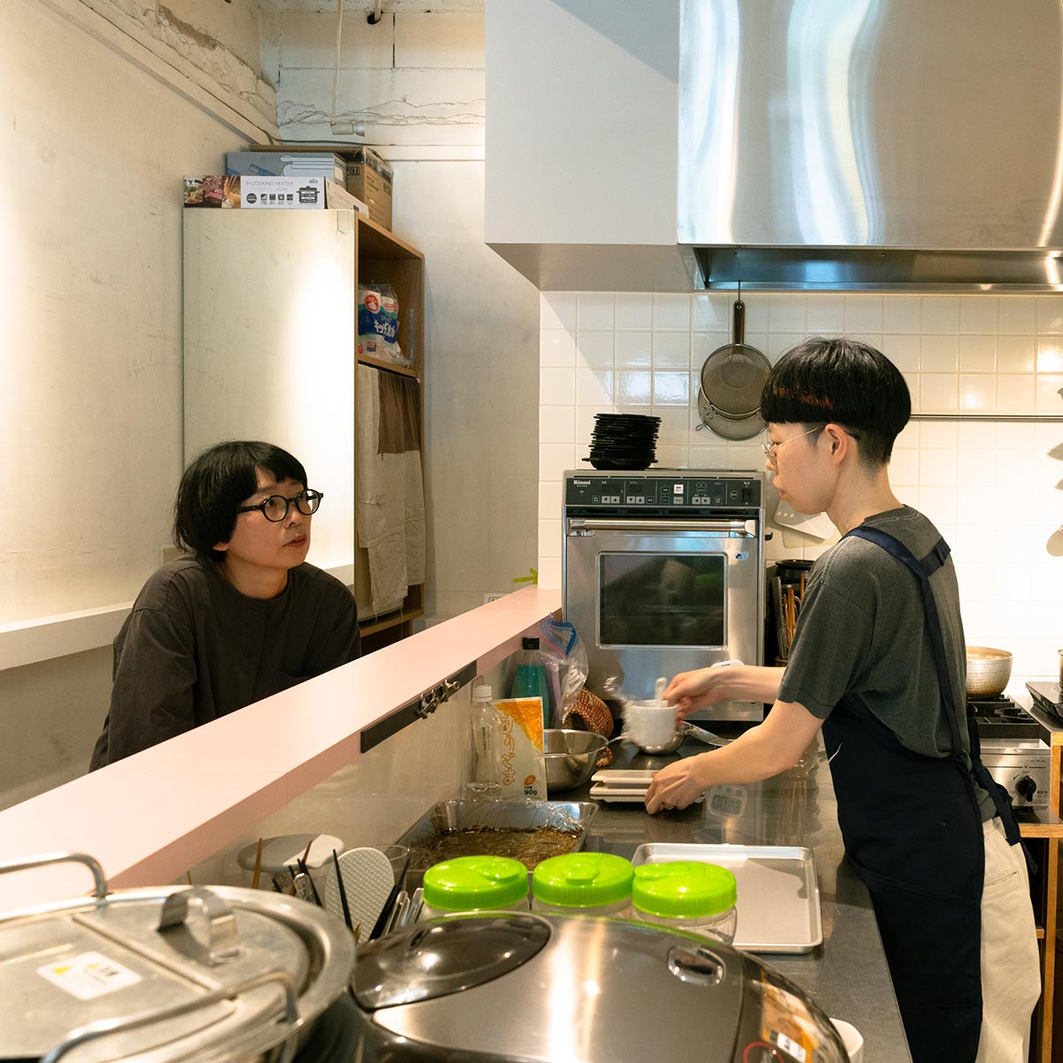 - お店で作業をするので、