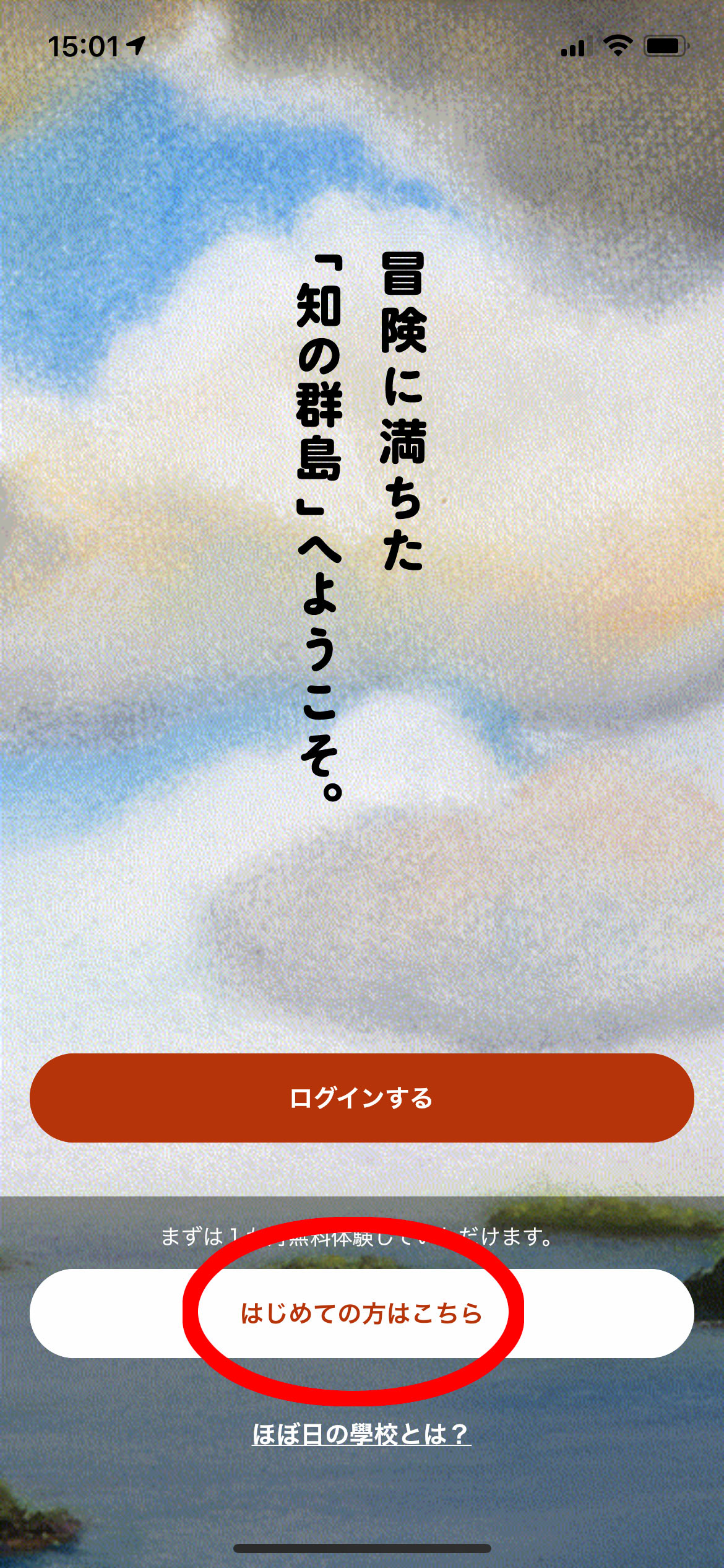 「はじめての方はこちら」をタップします。