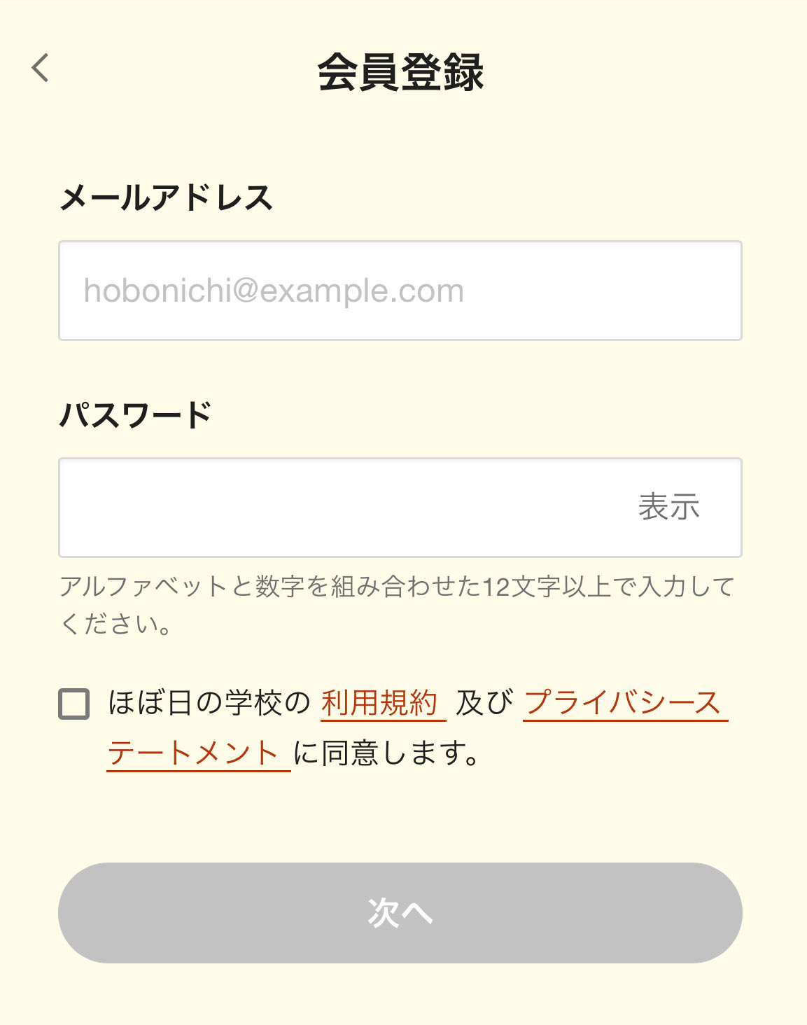 3.メールアドレスとパスワードを登録します。