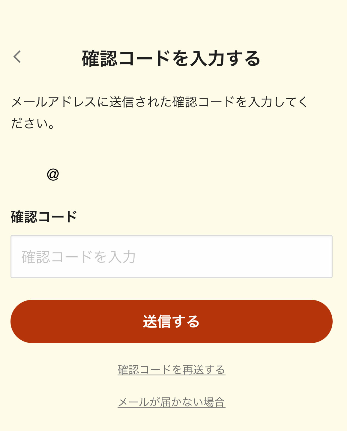 登録したメールアドレスに確認コードが届いているので