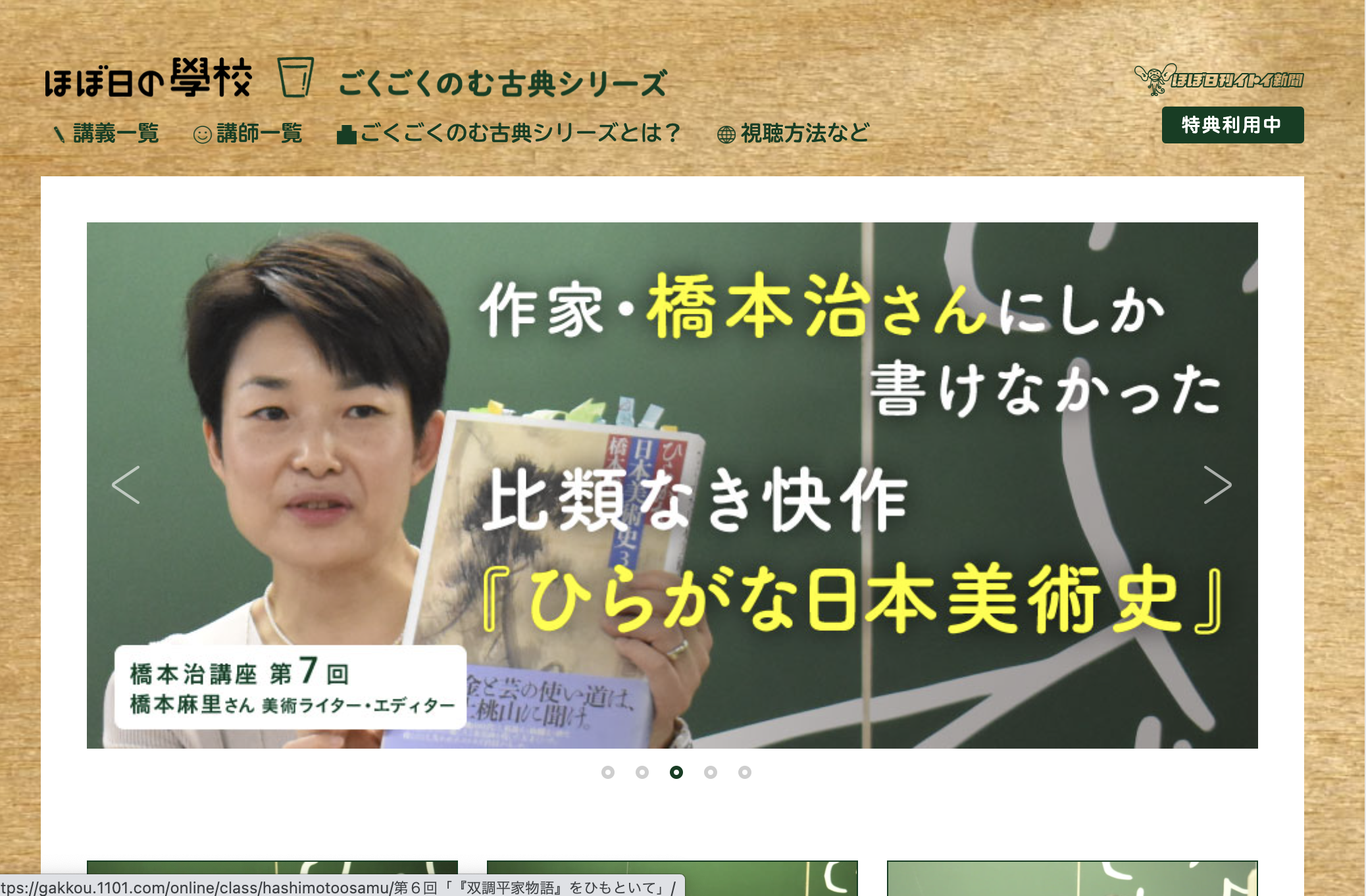 「ほぼ日の學校」のトップページの