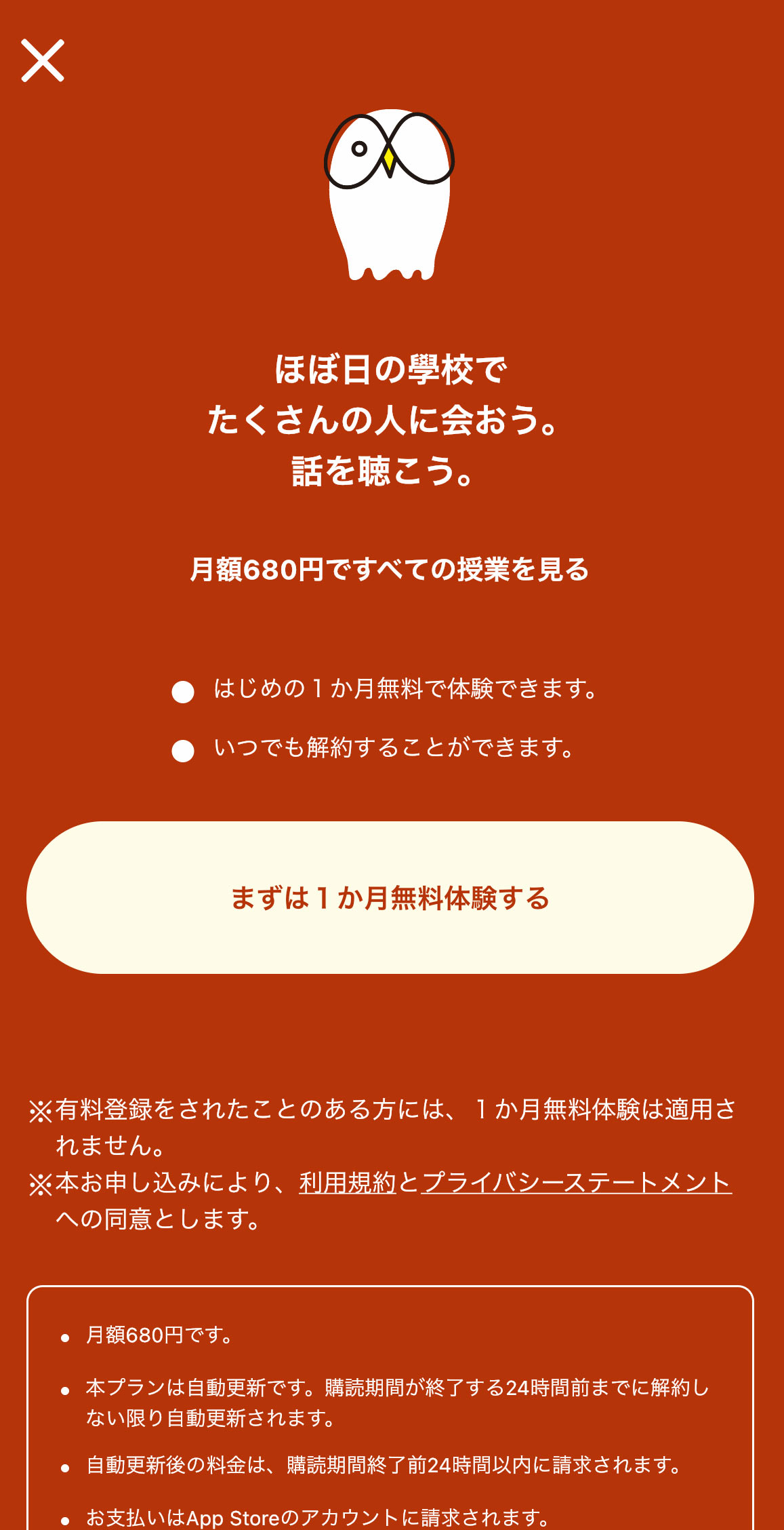 ご覧になる方「ほぼ日の學校アプリ」にアカウントを作成し有料会員登録(月額680円・税込み)すると