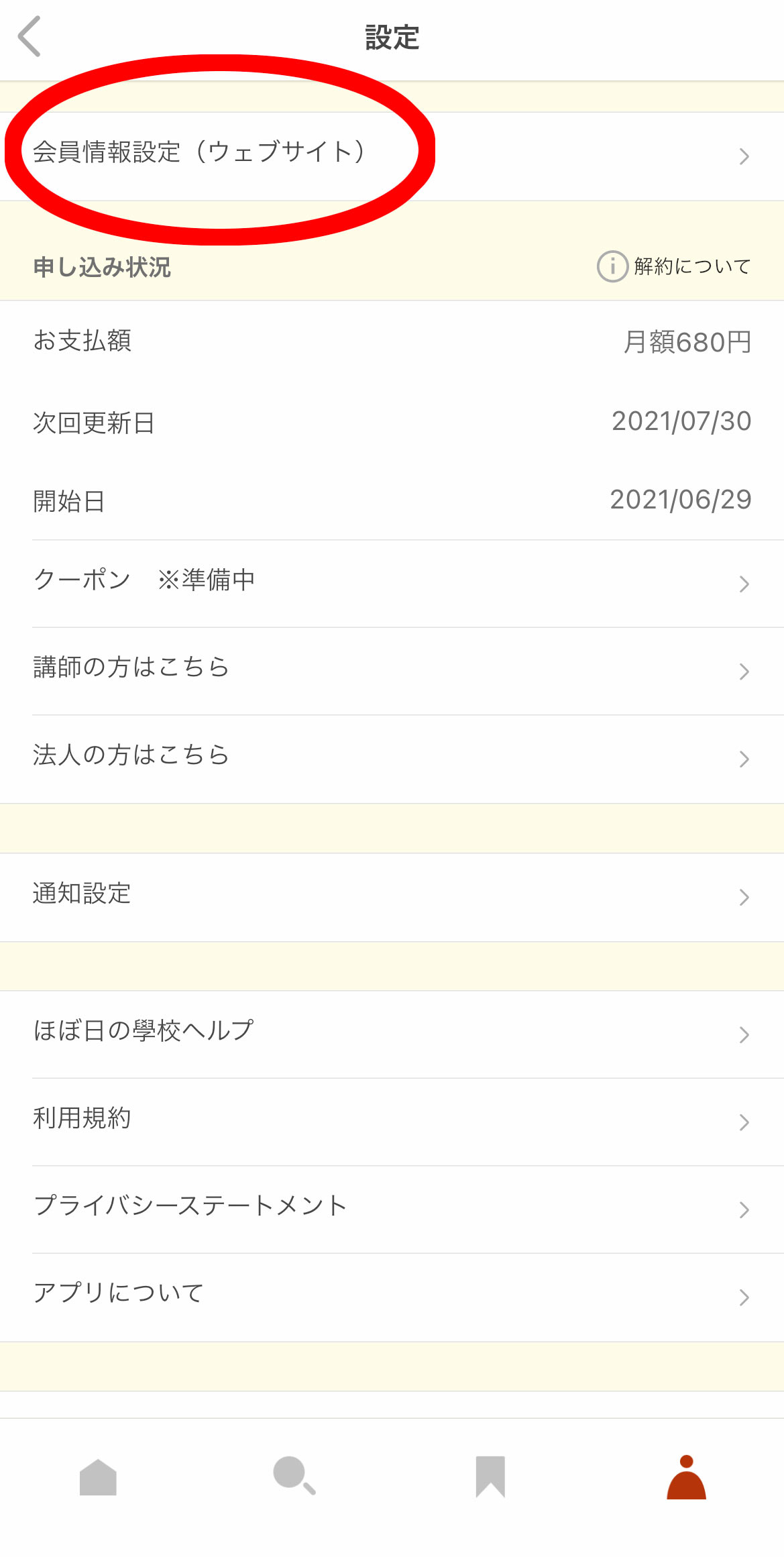 3.会員情報のページに進みます。