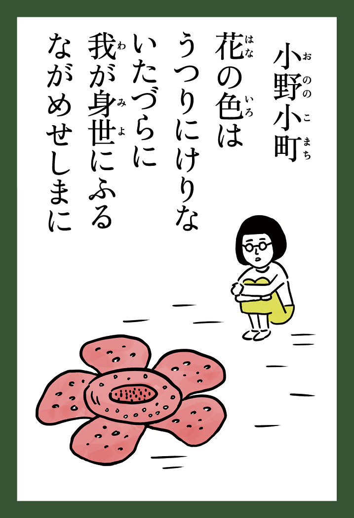 ぼんやりとラフレシアを見つめるメガネの小野小町、