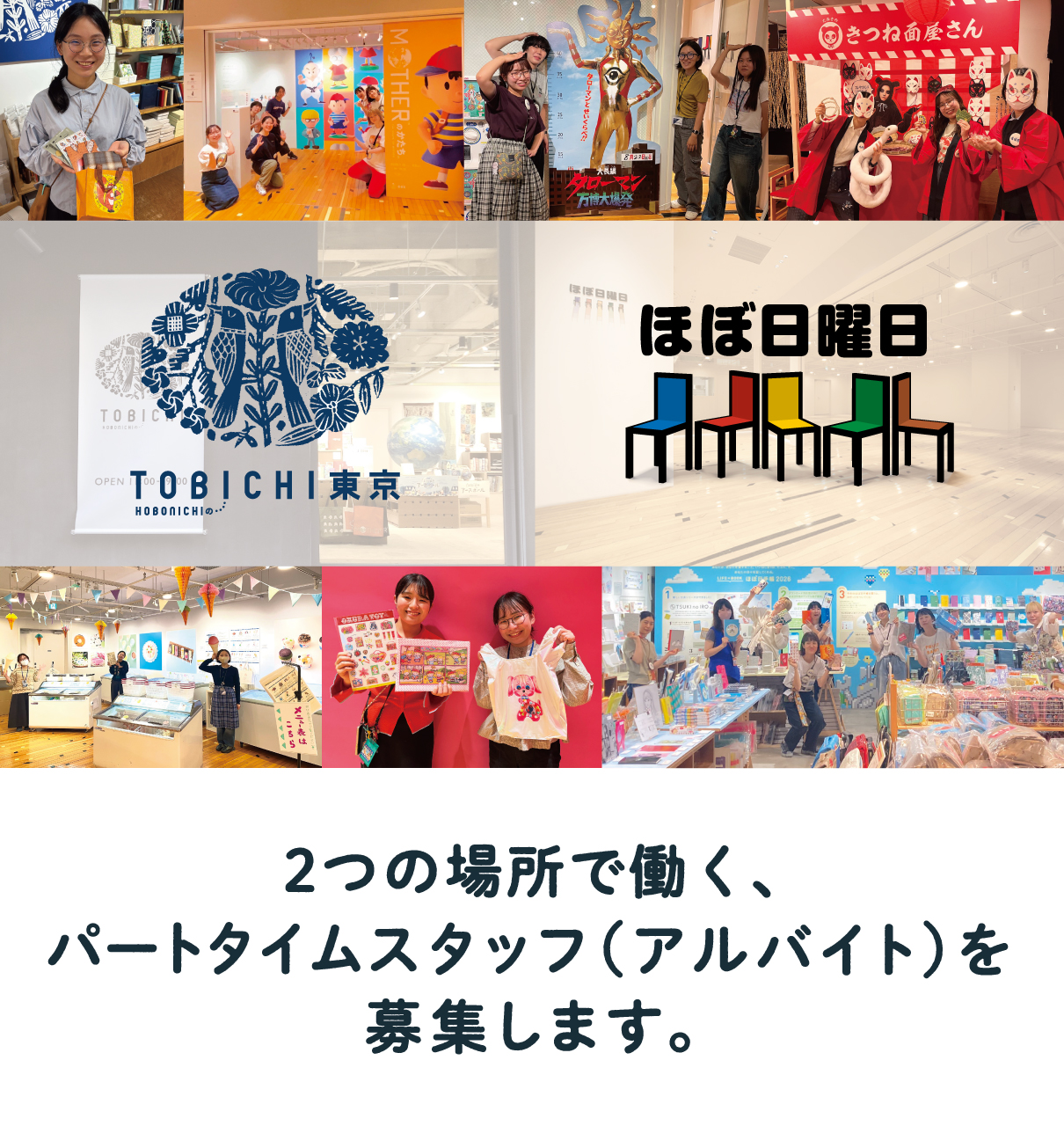 両方の店舗で勤務いただきます。・「TOBICHI東京」