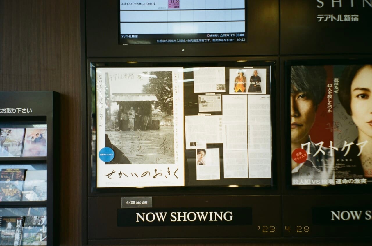 ふだんは乗らない電車に乗っている。『せかいのおきく』の初日の初回を観るためだ。向かっているのは、新宿の映画館。上映開始は午前11時。個人的な話で恐縮であるが、少々トイレが近い体質のため、劇場や寄席では端っこの席に座るようにしている。万が一にそなえての、予防的措置だ(その『万が一の事態』は、ほとんど来ないが)。でも今日は、いつもなら絶対に取らない「ど真ん中・真正面」を予約している(最後までトイレの話‥‥)。