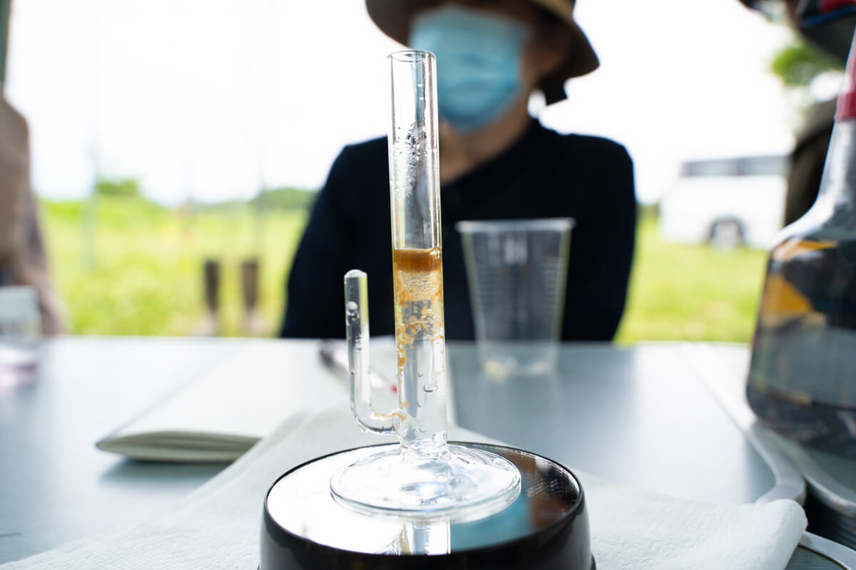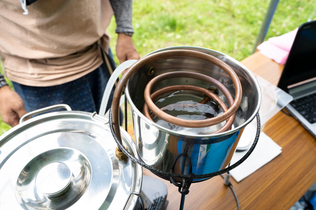 今日は「水蒸気蒸留法」と呼ばれる方法で、
