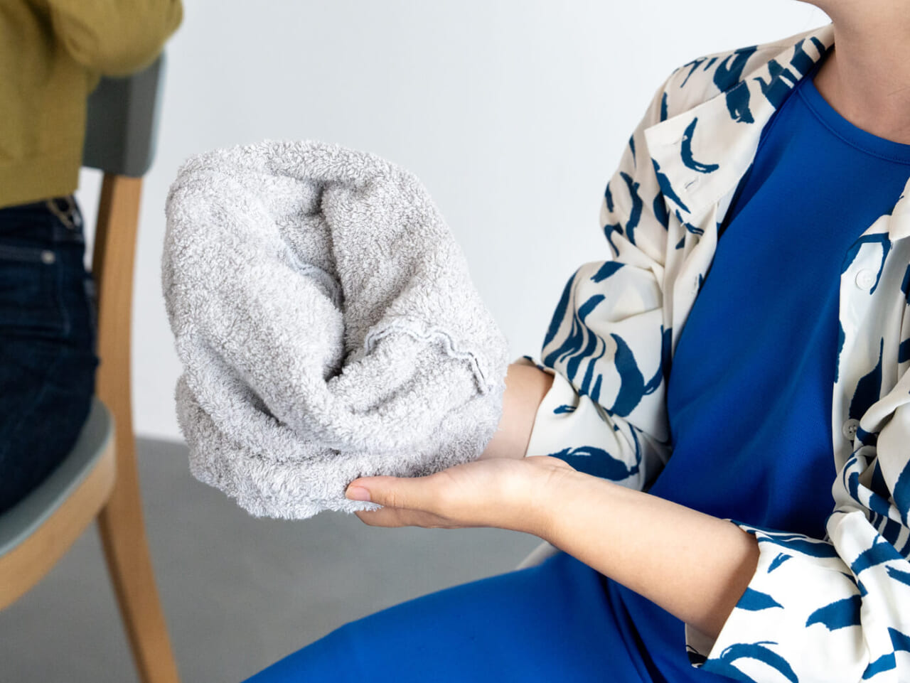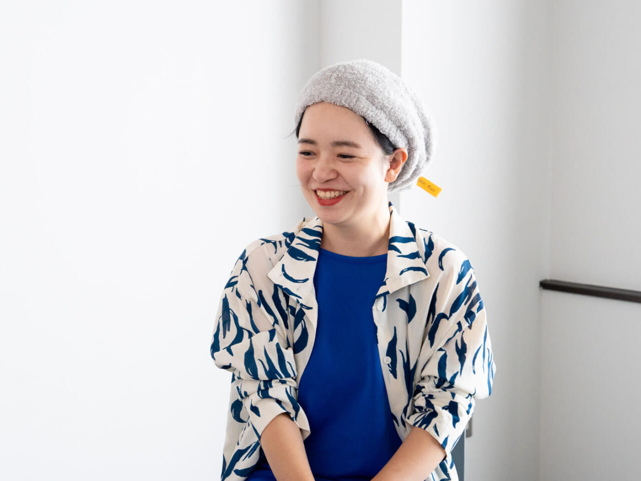 タオルキャップのおかげで髪を放っておけるので、