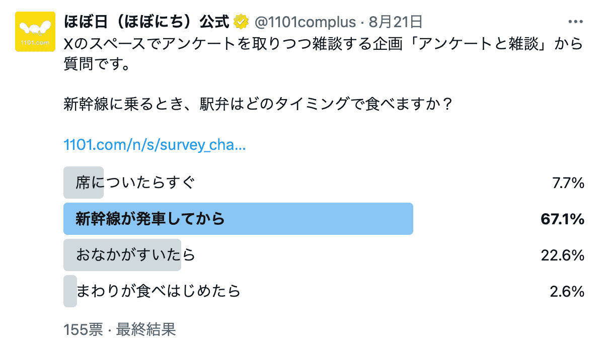 アンケート1:新幹線に乗るとき、駅弁はどのタイミングで食べますか?