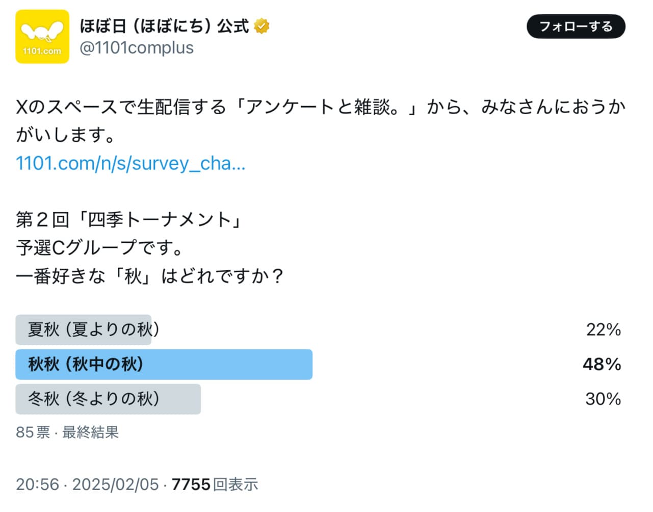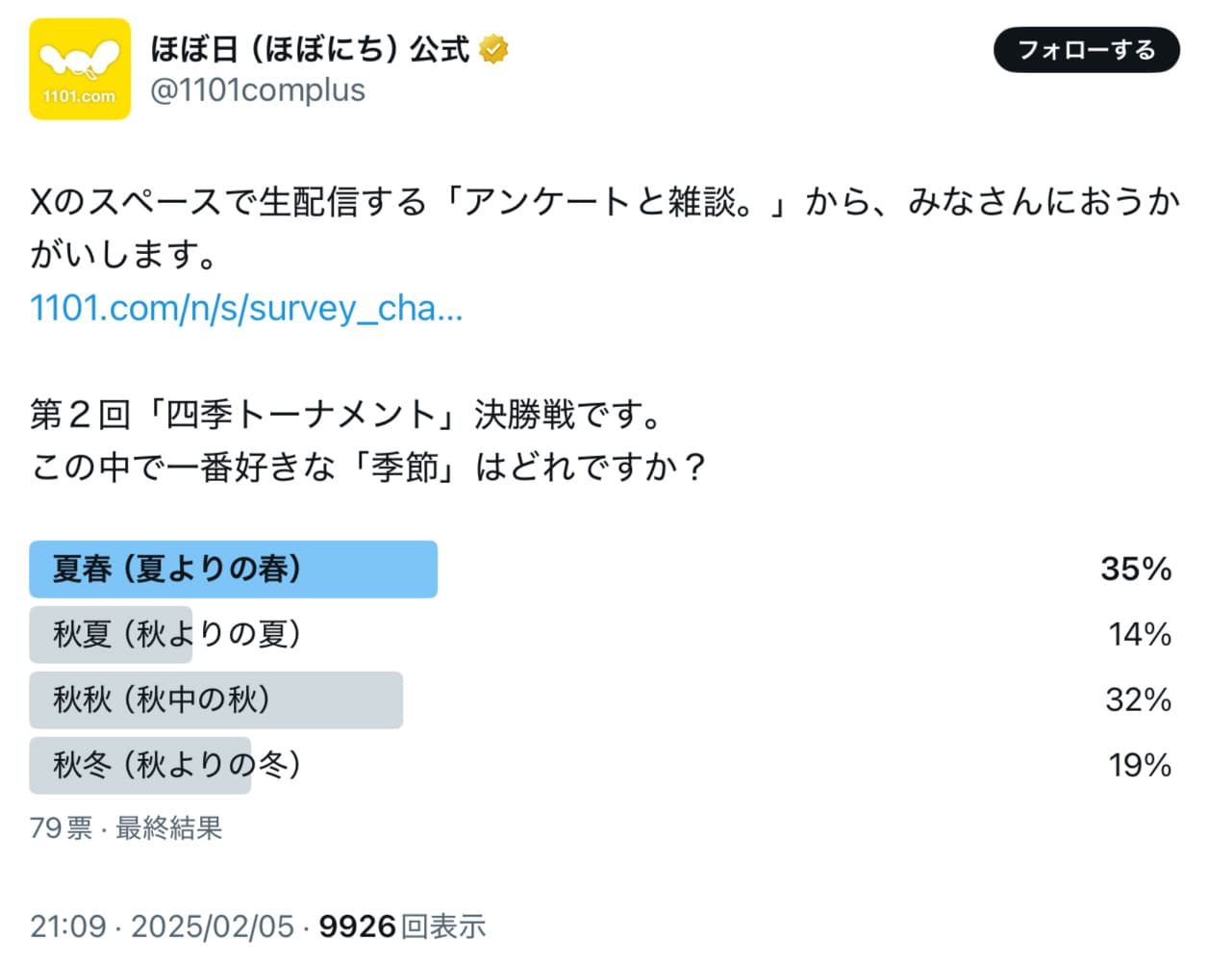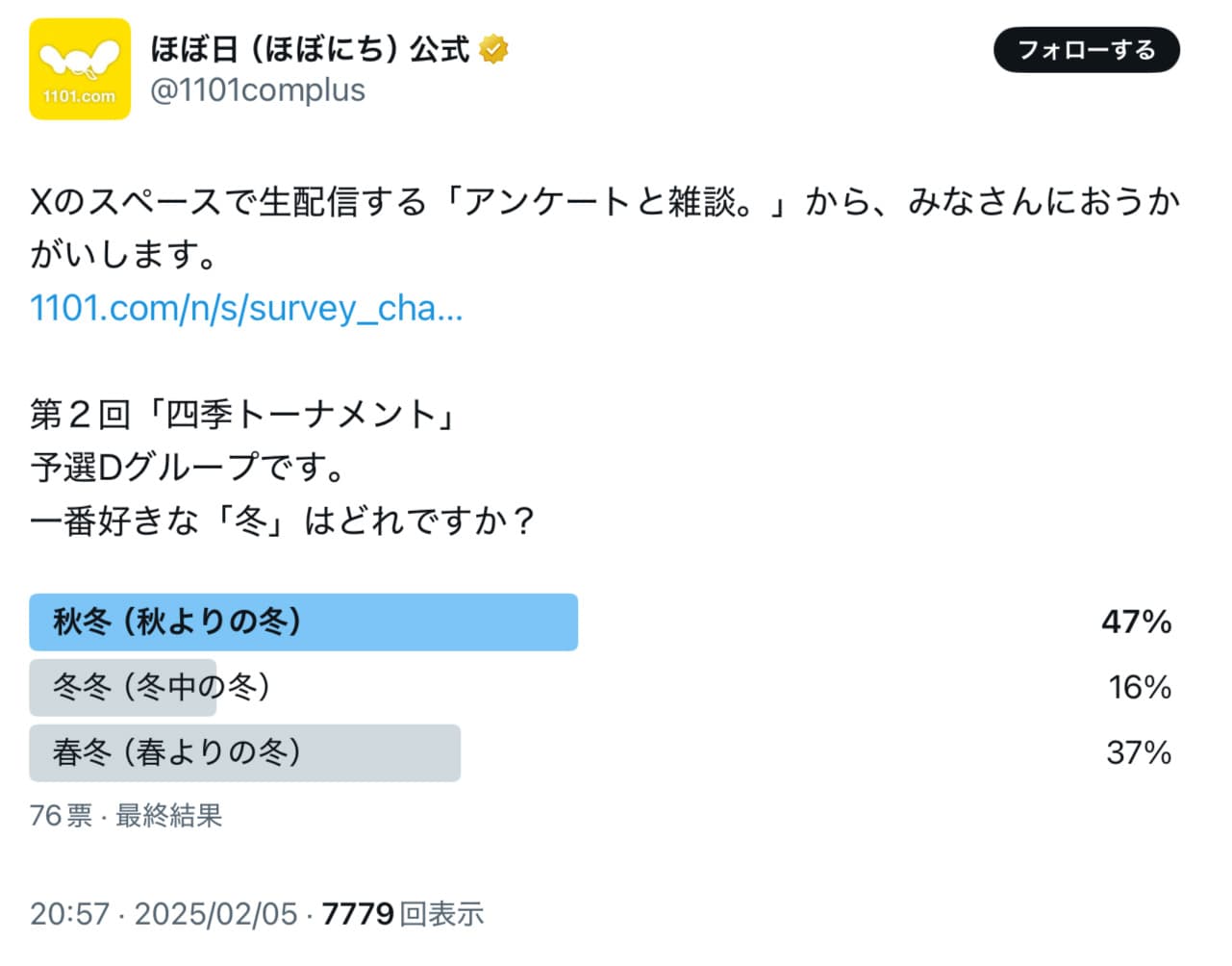 みんなが好きな季節は「秋よりの冬」なんですねー。