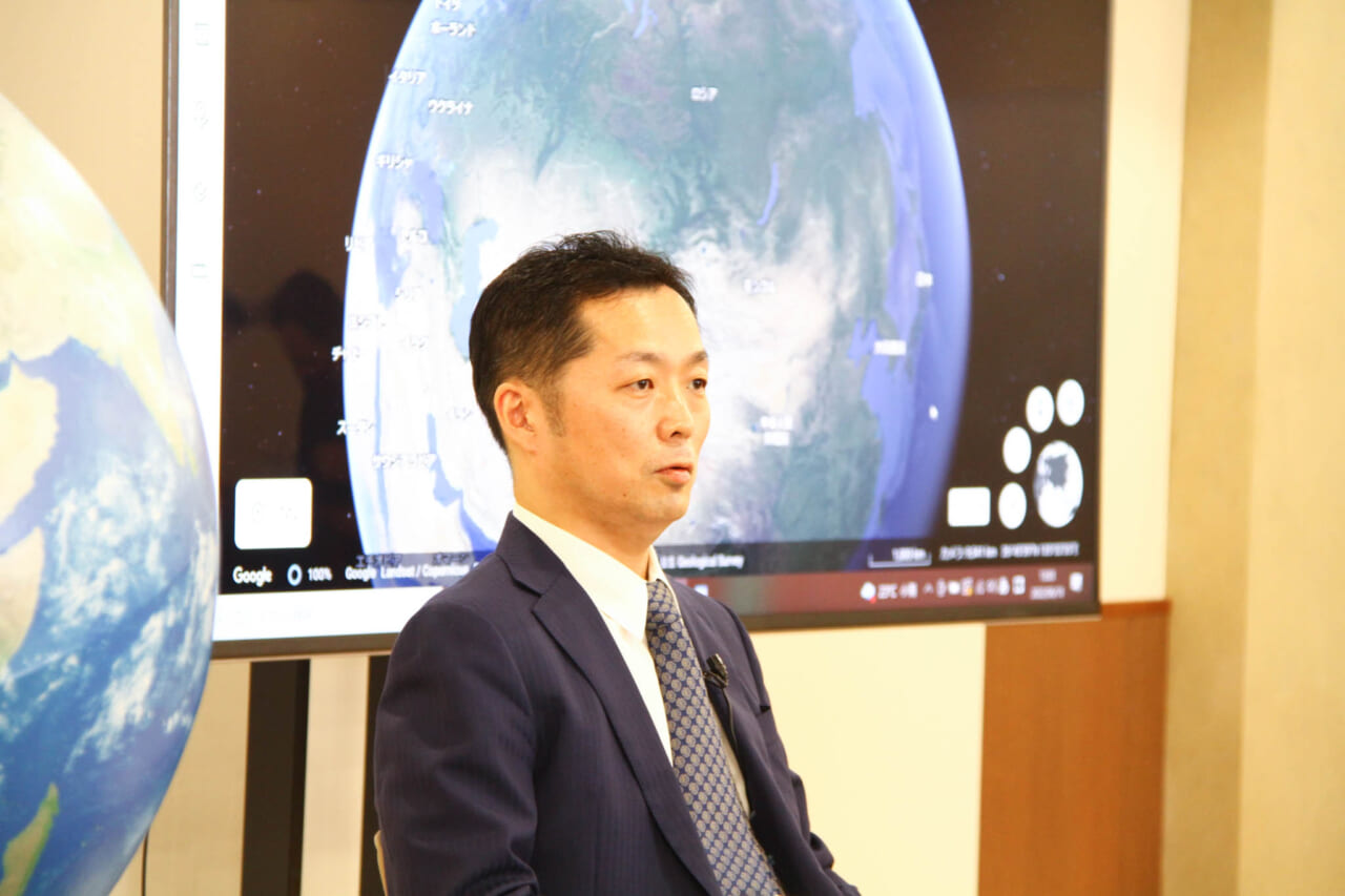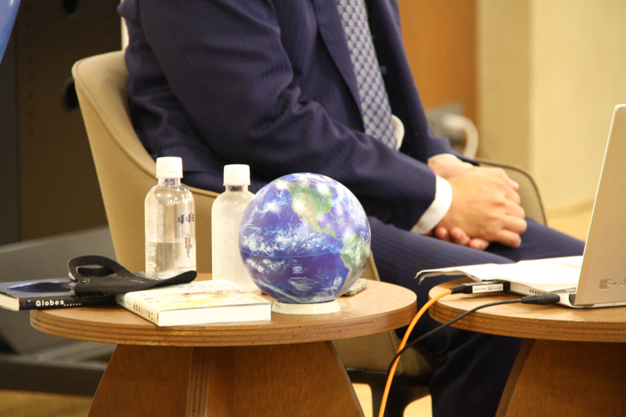 前半は、地球儀を使った講義形式。
