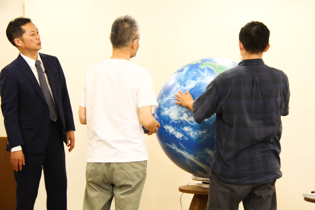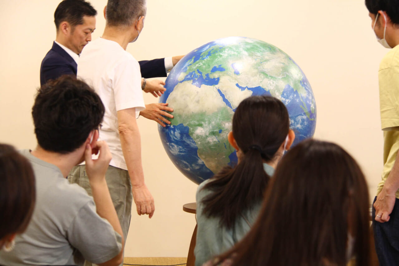 前半は、地球儀を使った講義形式。