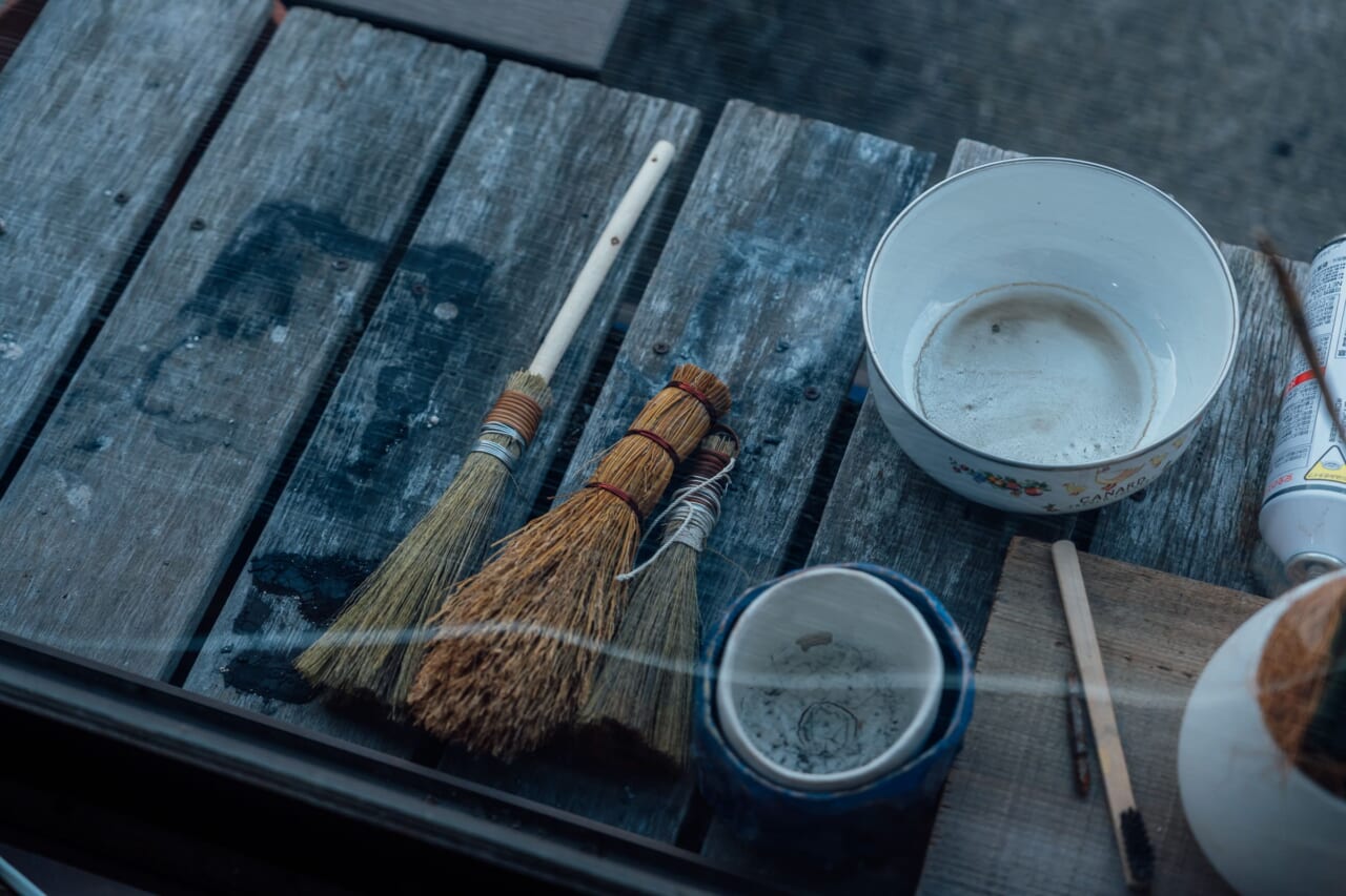 鉄や土の作品をつくる一方、