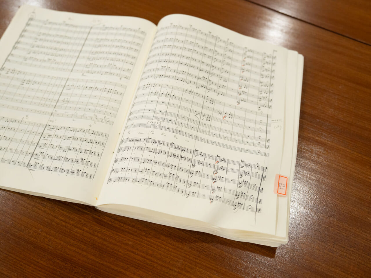 必ず譜面台に置き、進行に合わせてページをめくります。 - 「暗記していないの?」と思われるかもしれませんが、