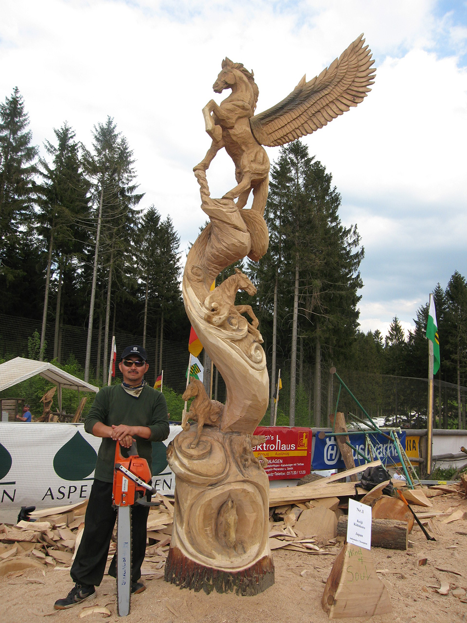 チェンソーアートの世界大会で