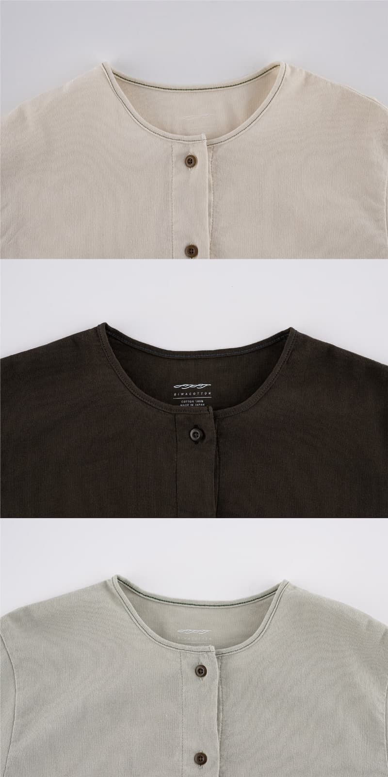 首元のステッチが、色によって違いますね。