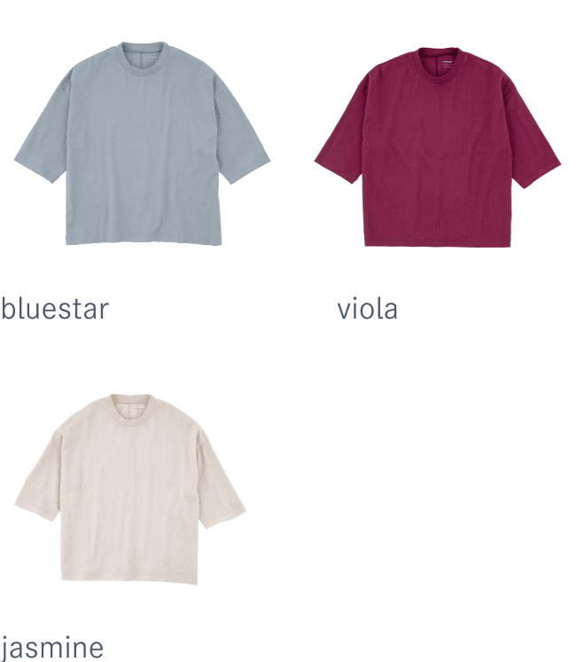 viola(ボルドー)、jasmine(生成り)の3色展開です。