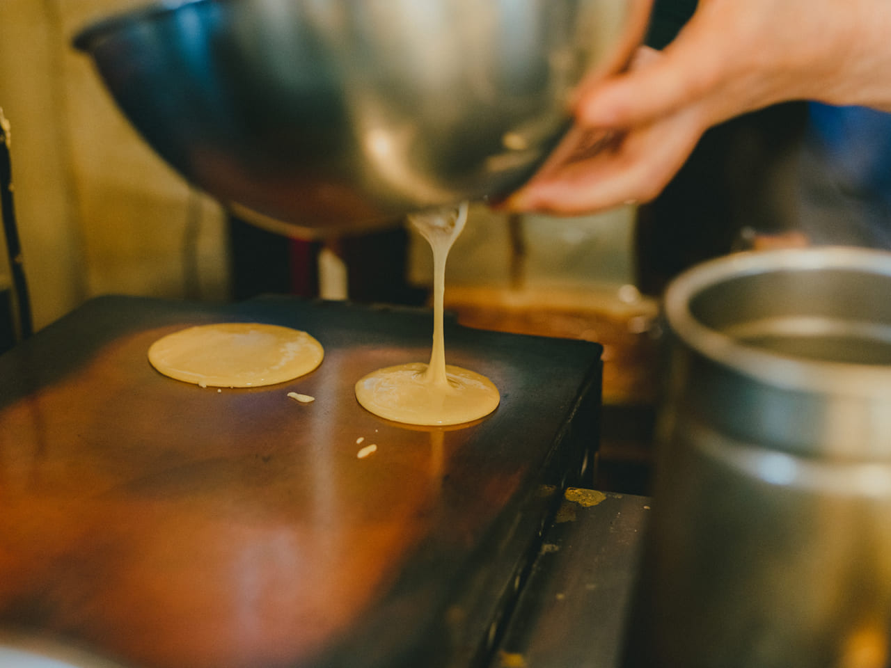 美しさにほれぼれする、銅板で焼いたホットケーキ。