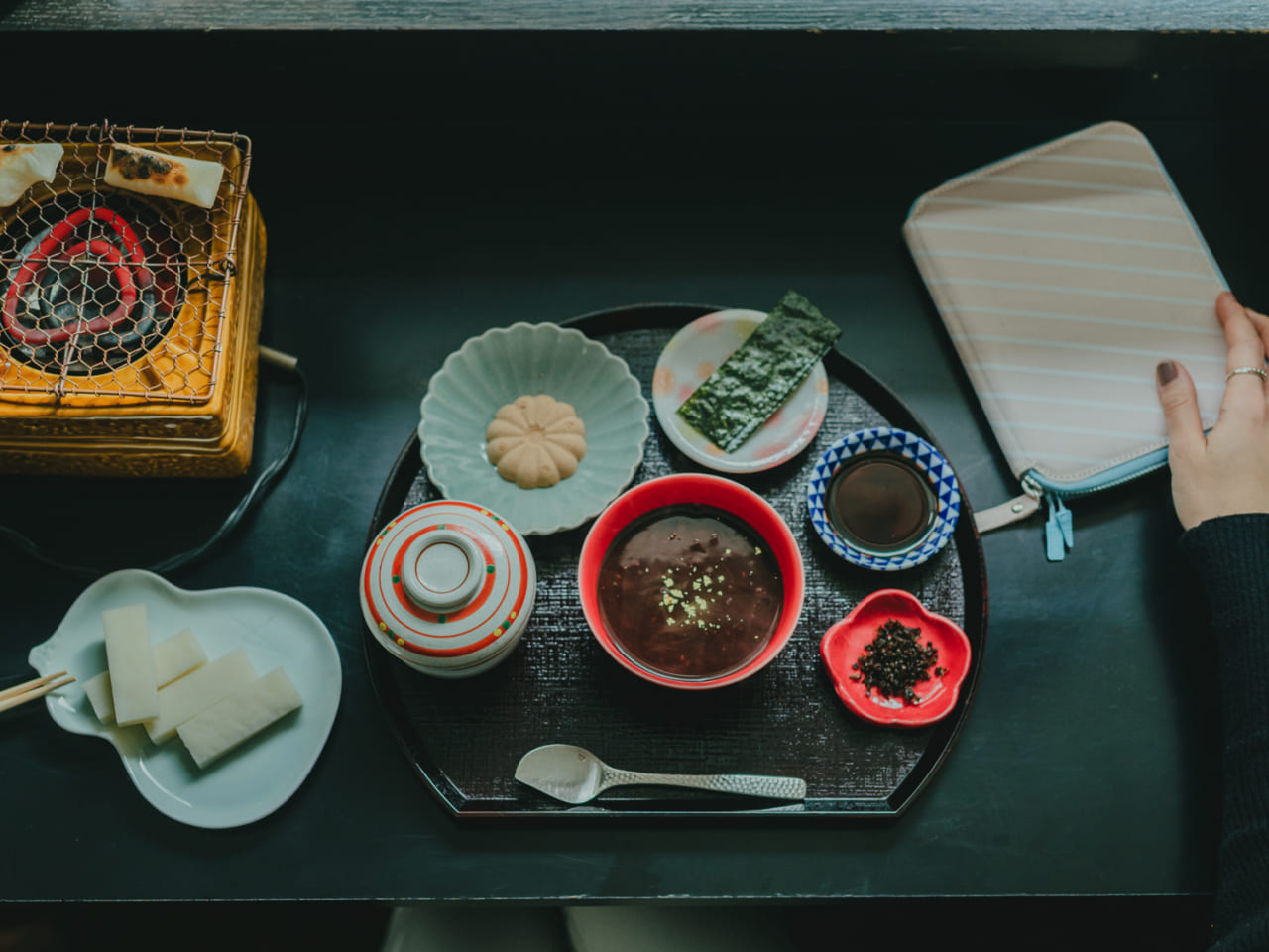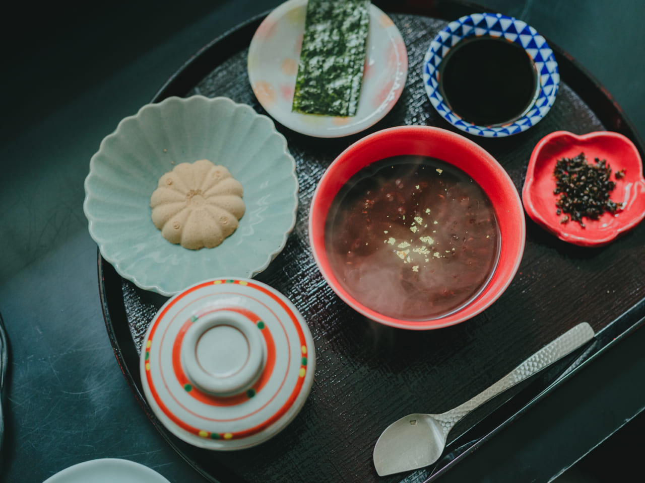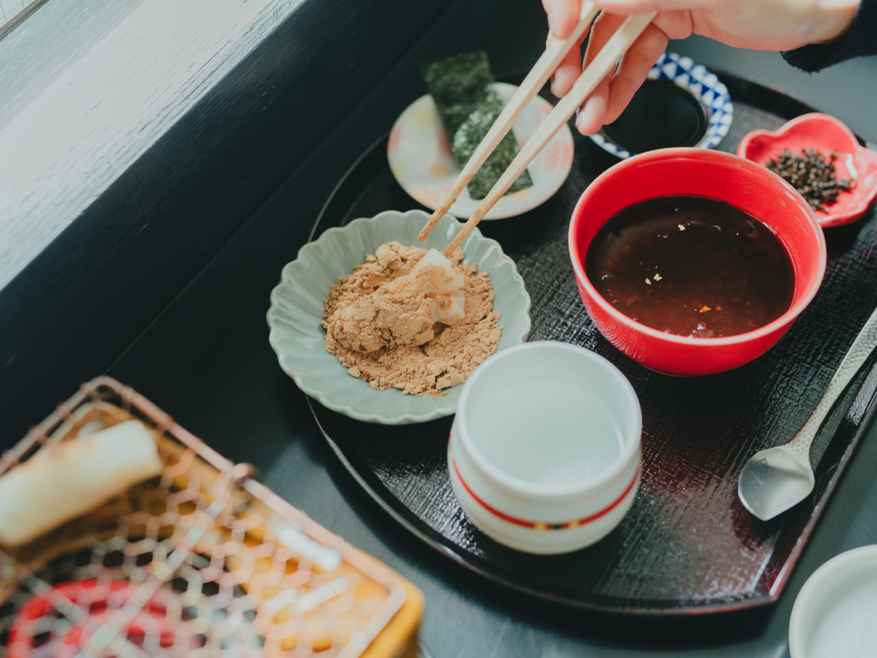 いそべ、きな粉、ぜんざい(またはおしるこ)、