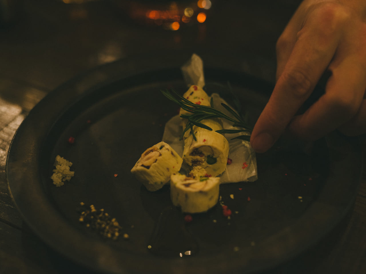 チョコレートサラミをオーダー。 - ローズマリーに火が点くと、