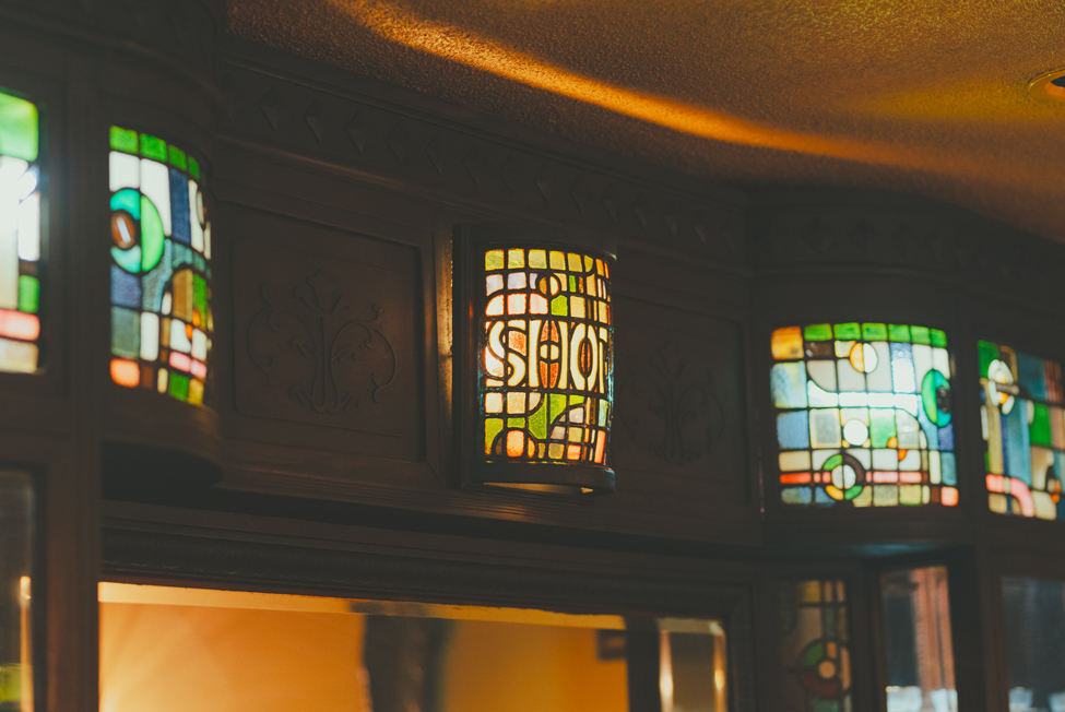 「店内のステンドグラスにも