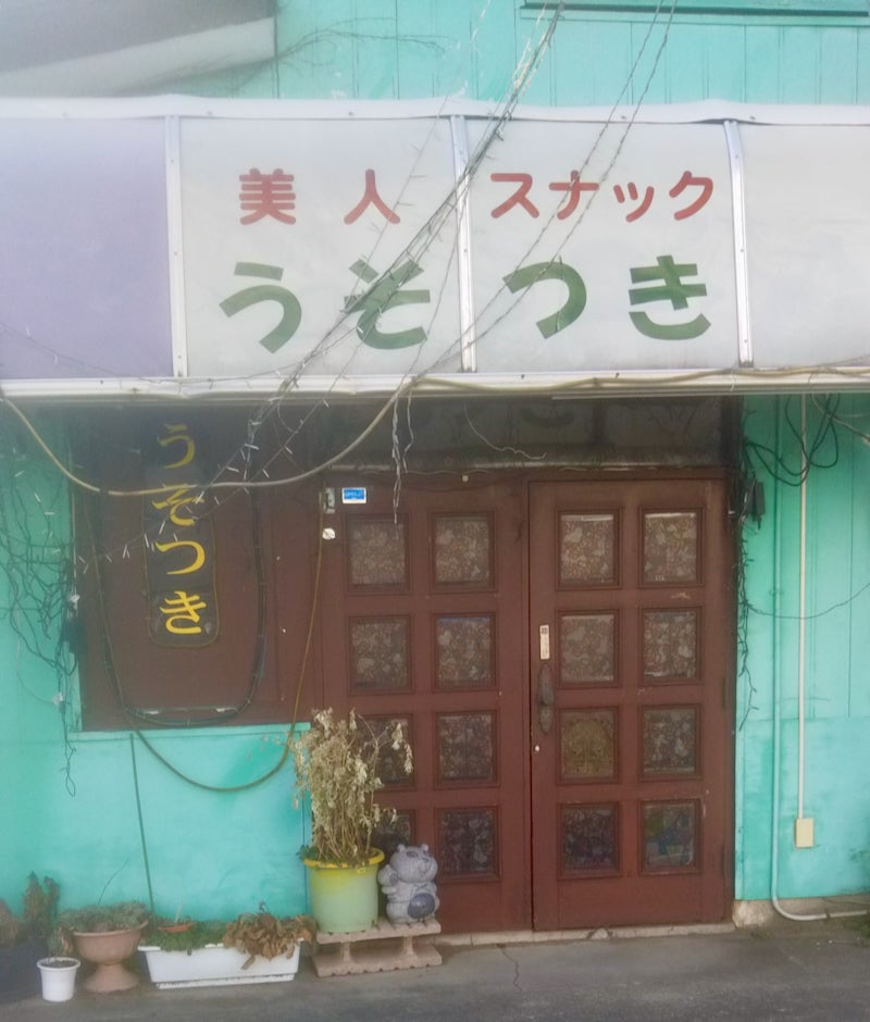夜の店には、半分騙されに行くようなものですが、正面切って「美人スナック うそつき」と来ると、逆に正直な良い店なんじゃないか? と思ったり思わなかったり。二箇所ある「うそつき」のフォントが違うところも好みです。じゃあ、入るのか? と言われたら入らないんですけど。