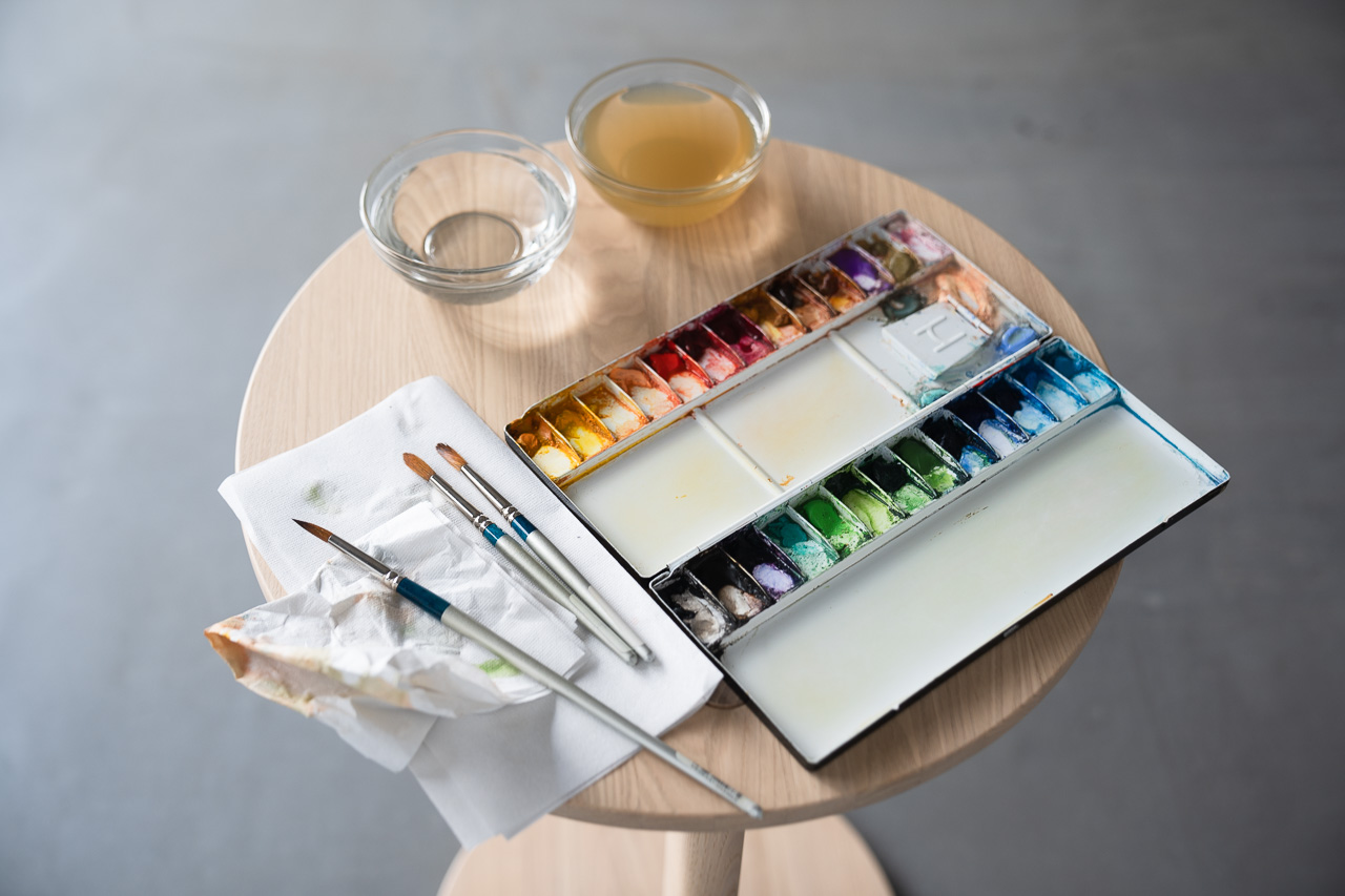それで、水彩絵の具にしてみようと、一式揃えました。