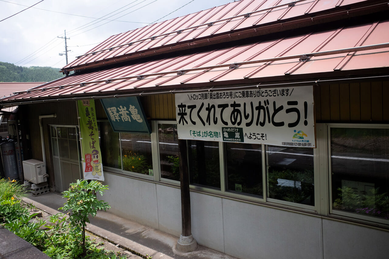 - JR木次線の駅のひとつ「亀嵩(かめだけ)駅」。
