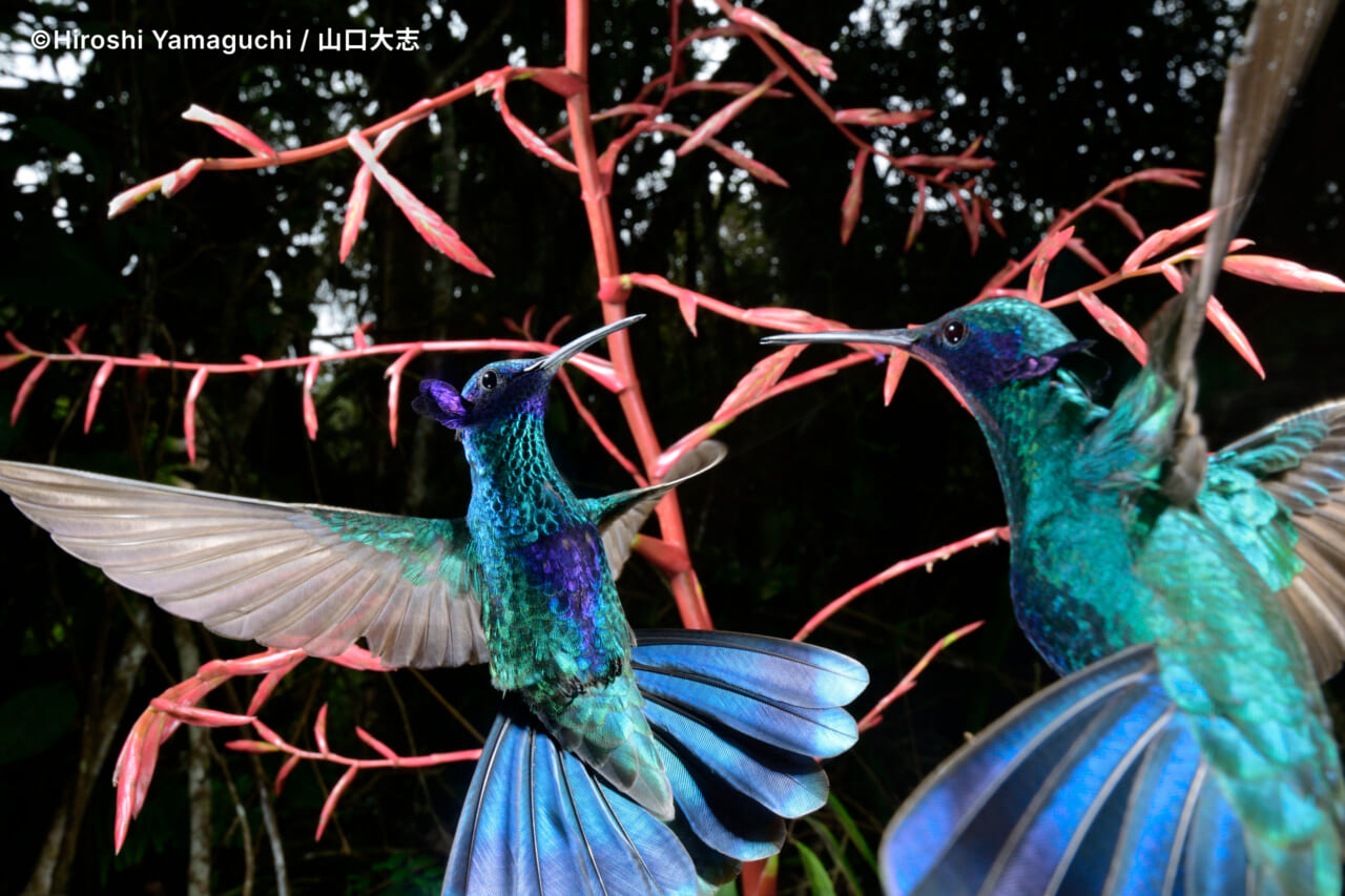 - これは2羽のハチドリがケンカをしているところです。