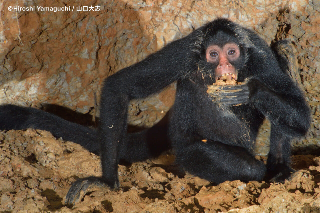 - クモザルが土を食う様子は、