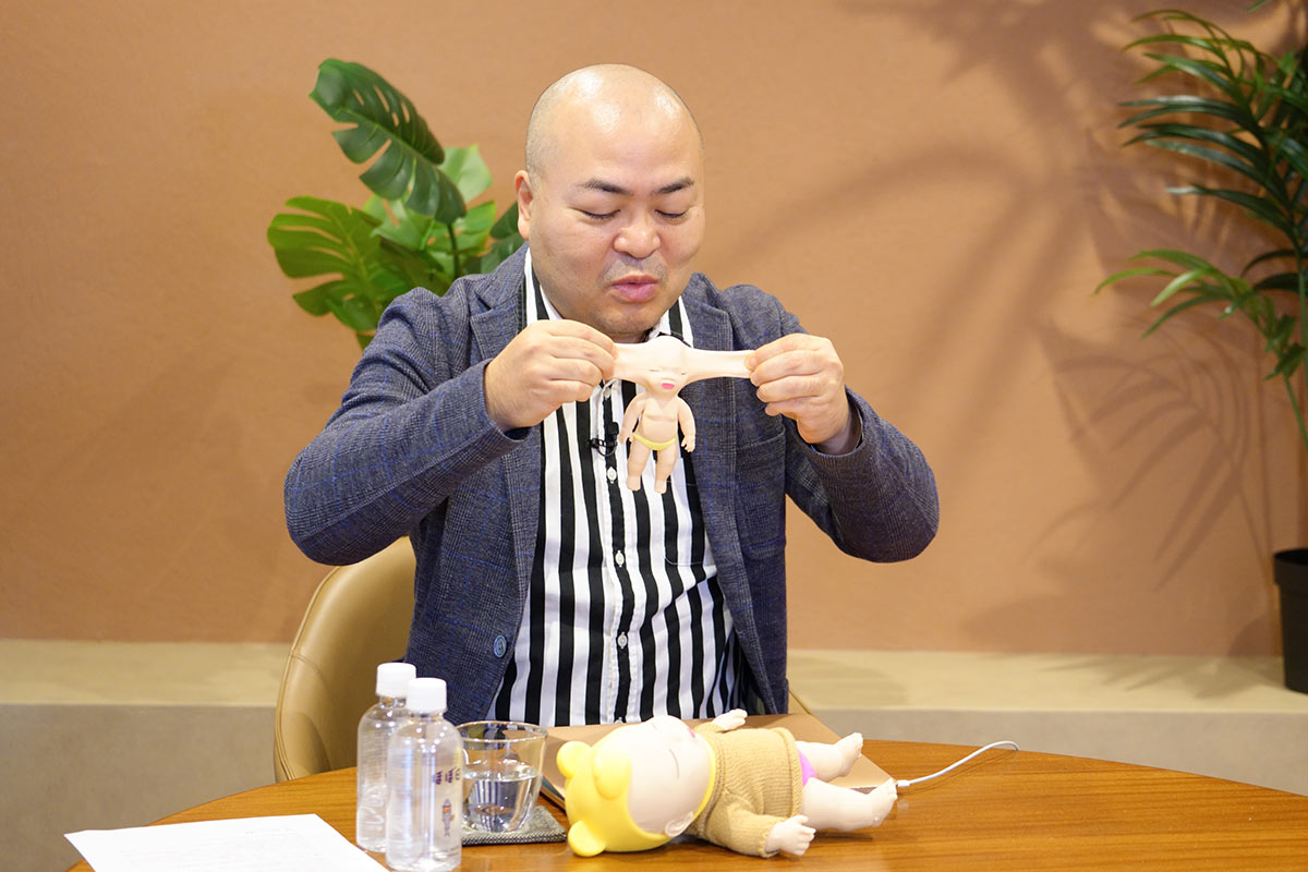 しかもこの人形、引っ張るとびよ~んと伸びる