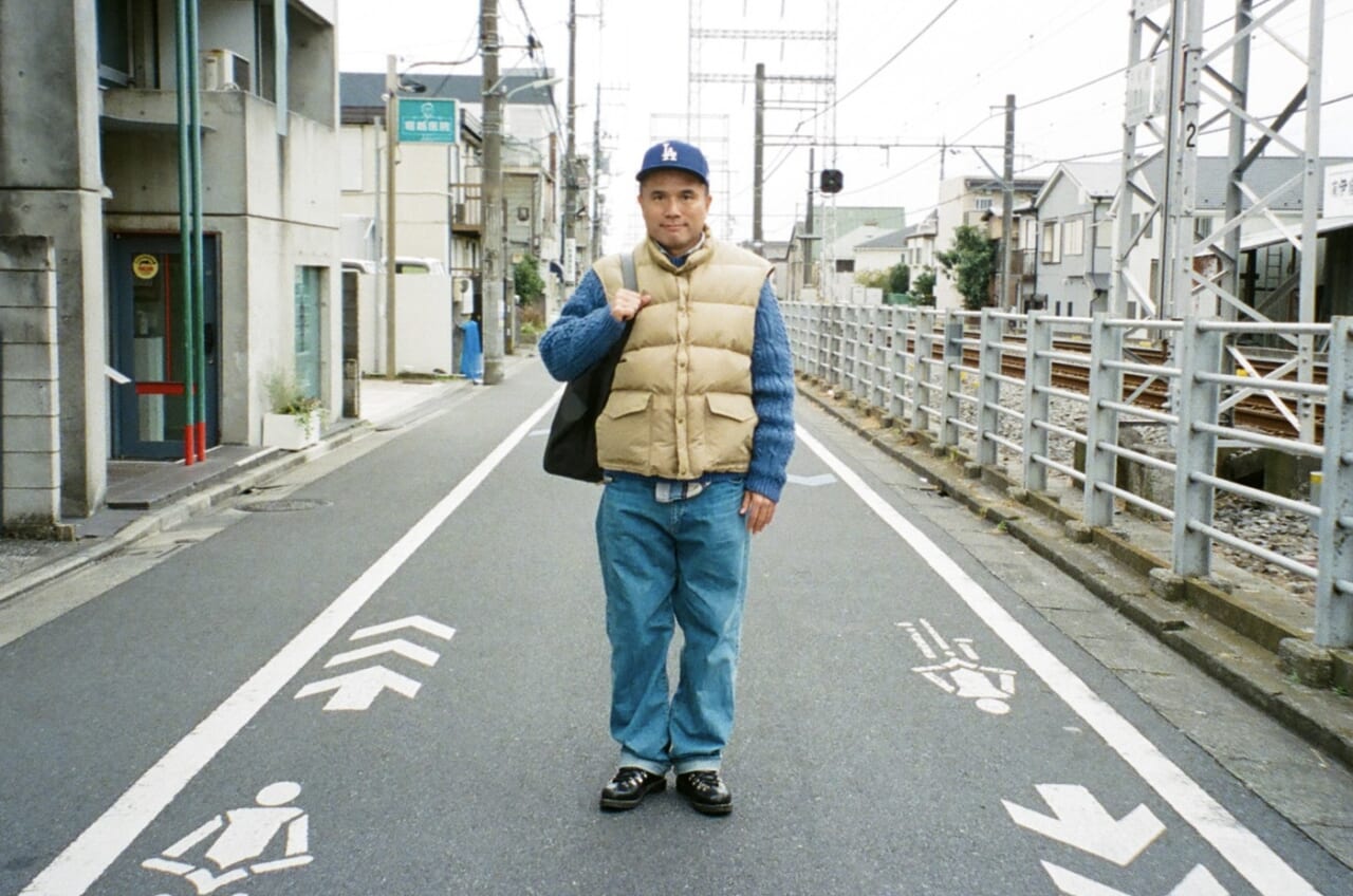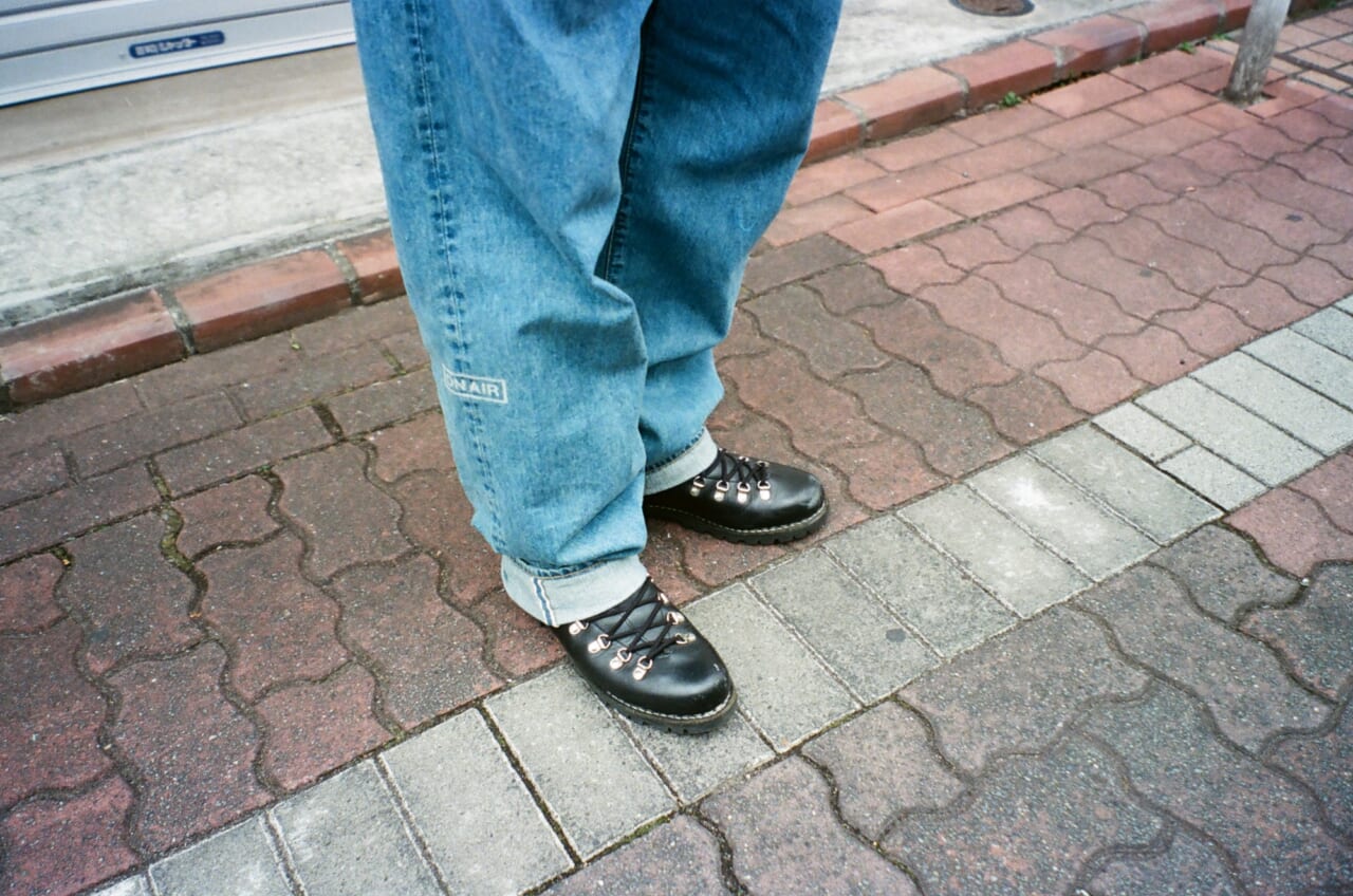 パラブーツはアヴォリアーズ、定番です。履けば履くほど自分になじんでくるブーツ。Uチップのシャンボードをはじめ他のパラブーツに関してはちゃんと磨いてるんです、ぼく。あるていど履いたかなと思ったら靴墨を入れてるんですが、こいつに関してはほったらかし(笑)。手入れしないほうがカッコいいかなと思って。ちょっとくらい汚れていても、どこか上品な雰囲気を失わない。フランスのシューズブランドだから、なのかな。泥や埃も含めて絵になるブーツです。逆にダナーの黒なら、わざわざきれいに磨いてから履くと思う。カバンはオーラリーでオーダーした新作。自分では「編集長バッグ」と呼んで愛用してます。ぼく、『編集長』という雑誌の編集長をやってるんだけど、いろいろガサッと入るバケツみたいなカバンがずっとほしくて。ま、今日は手袋しか入ってないんだけど(笑)。ON AIRのデニムも、いいでしょ。最近はこればっかり。風合いとか色落ちの感じとかシルエットとかいろいろ秀逸だけど、個人的にはサイドに入ったロゴが好き。オムライス脇の福神漬くらい、いい仕事してる。