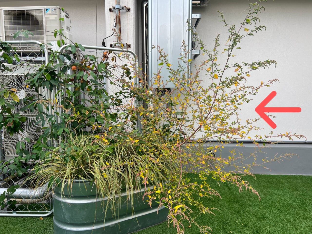 右半分は、屋上の園芸プランターにすでにいる雑草を